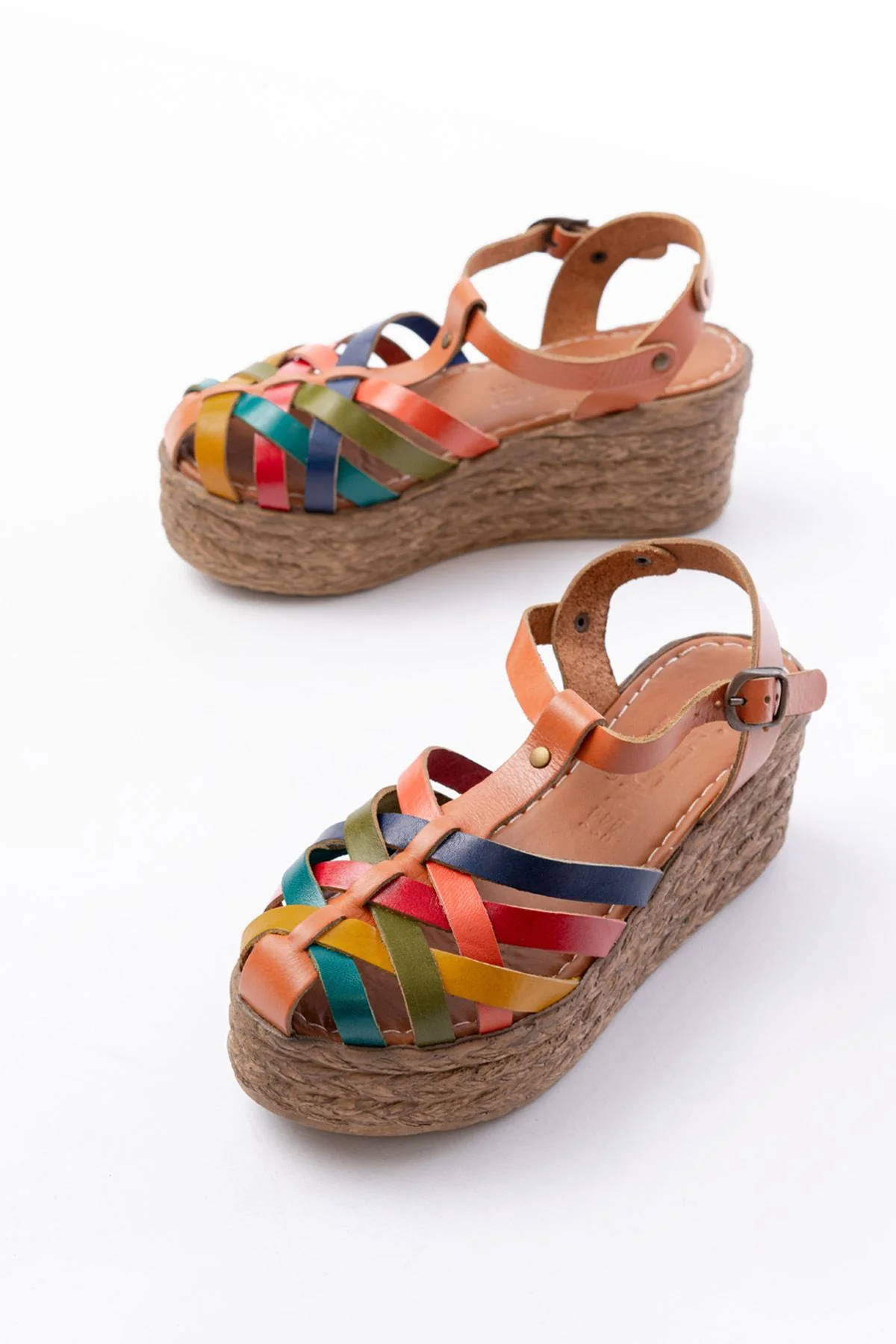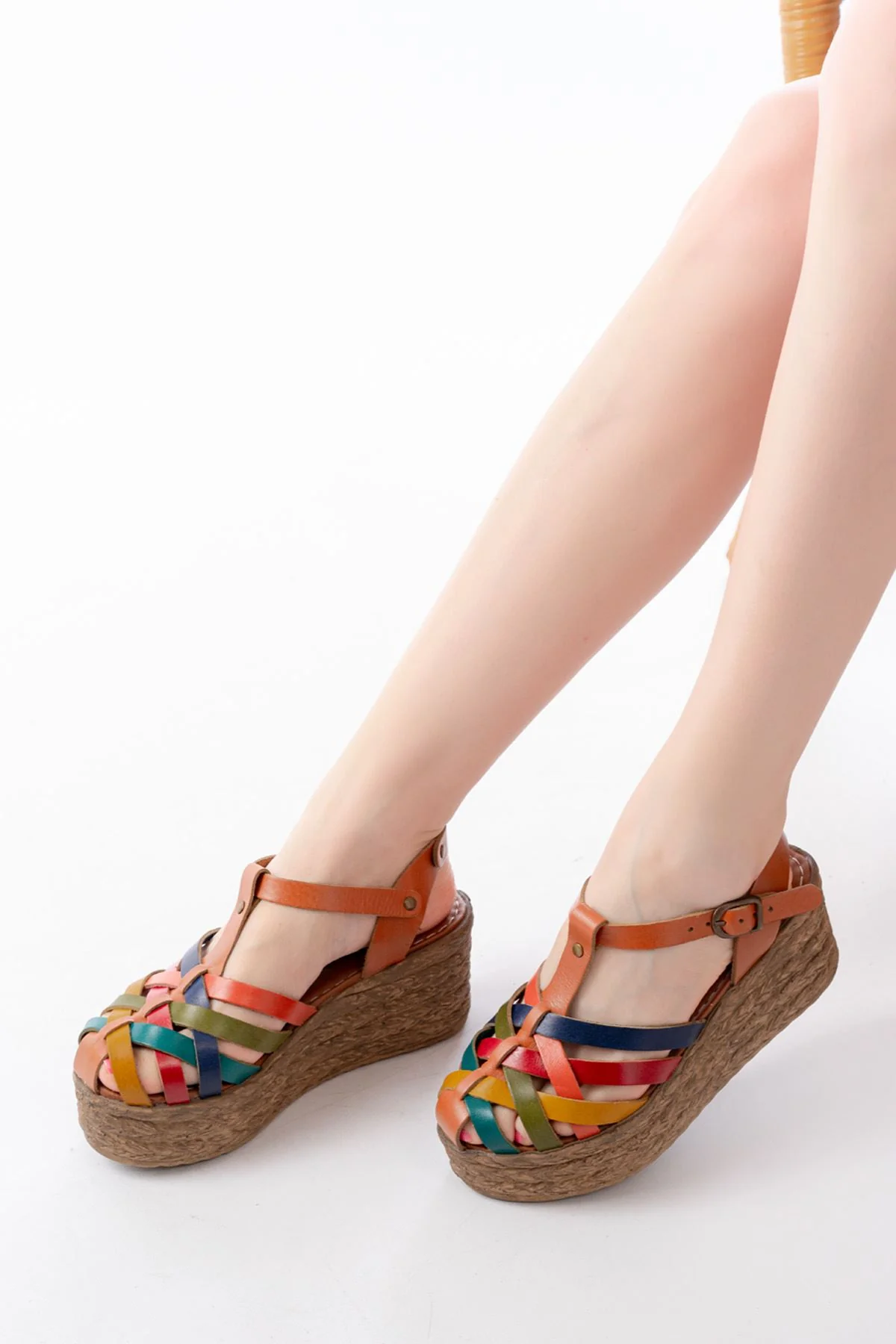 684-02Sandales femme orthopédiques compensées en cuir véritable