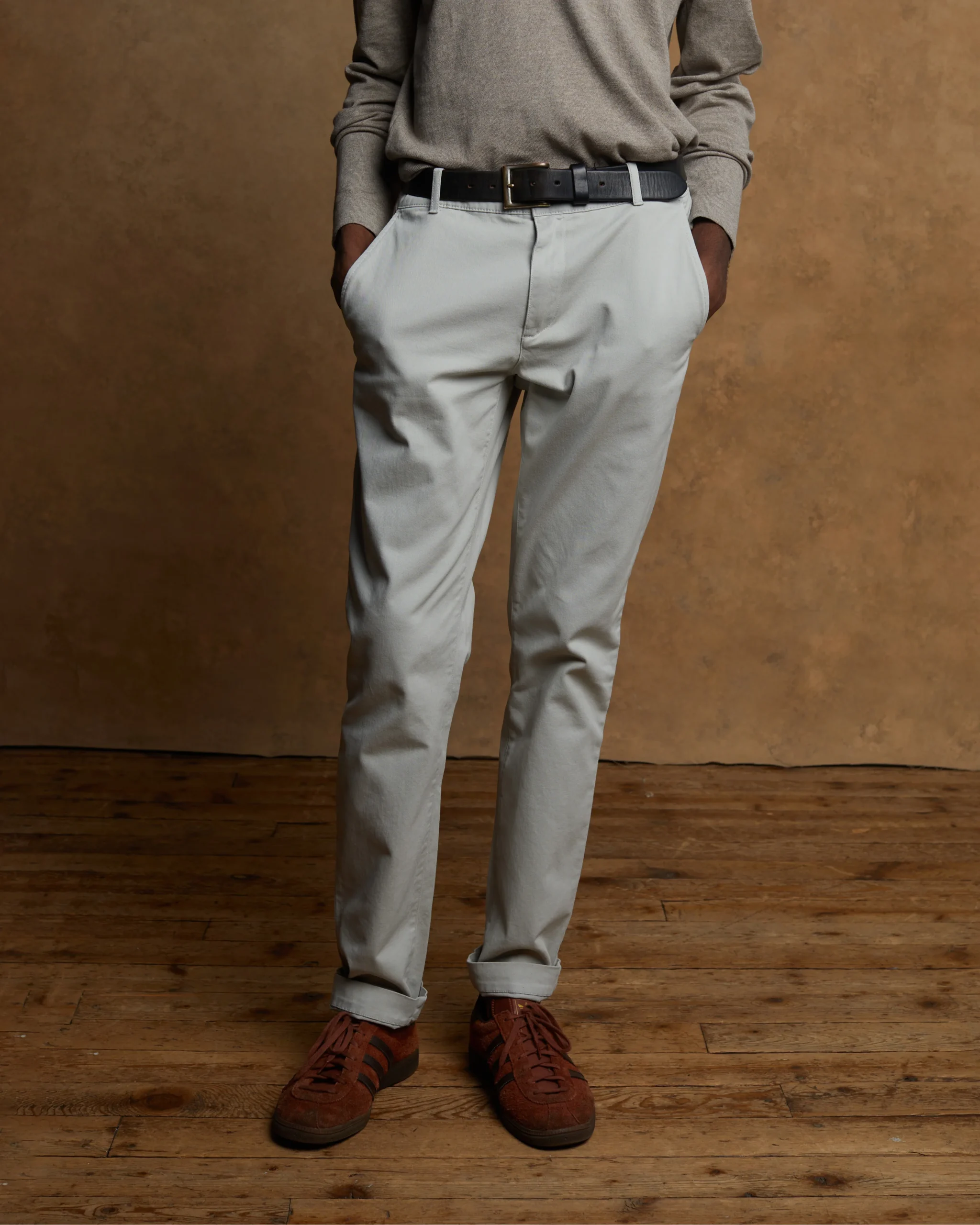 Découvrez ALBERT, notre pantalon chino classique à la coupe ajustée. Fabriqué en twill de coton, il est le basique incontournable du vestiaire masculin. Nous proposons ce chino est dans des coloris exclusifs développés par teinture végétale en pièce.