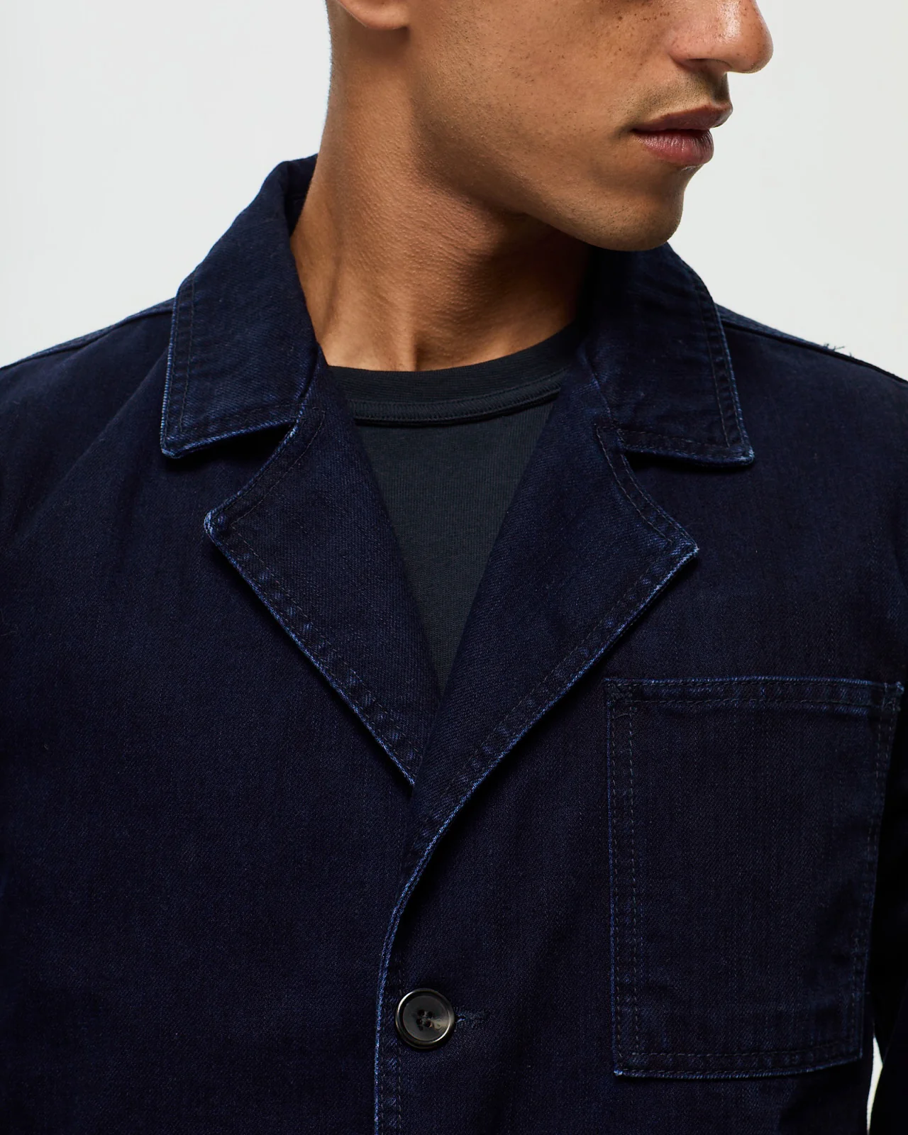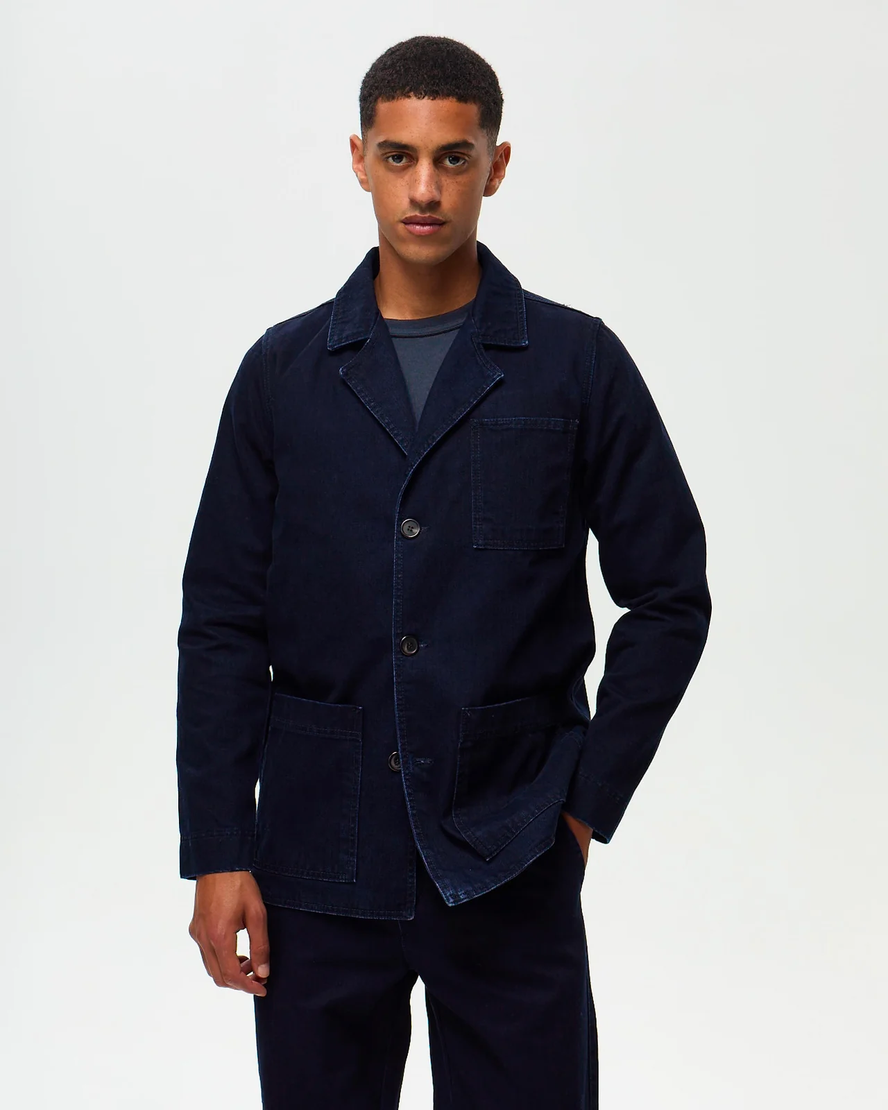 La veste d’architecte en denim rincé, l’esprit workwear raffiné. Confectionnée en denim espagnol, tisseur spécialisé depuis 1846 reconnu pour son expertise textile durable. Cette toile authentique et légèrement rustique révèle une texture naturellement dense dans une démarche écoresponsable assumée. Sa coupe droite non doublée s’adapte parfaitement à toutes les morphologies. Trois poches plaquées extérieures ajoutent une fonctionnalité workwear. Une pièce hybride entre vestiaire de travail et silhouette tailleur casual, pensée pour la demi-saison. Fabrication marocaine.