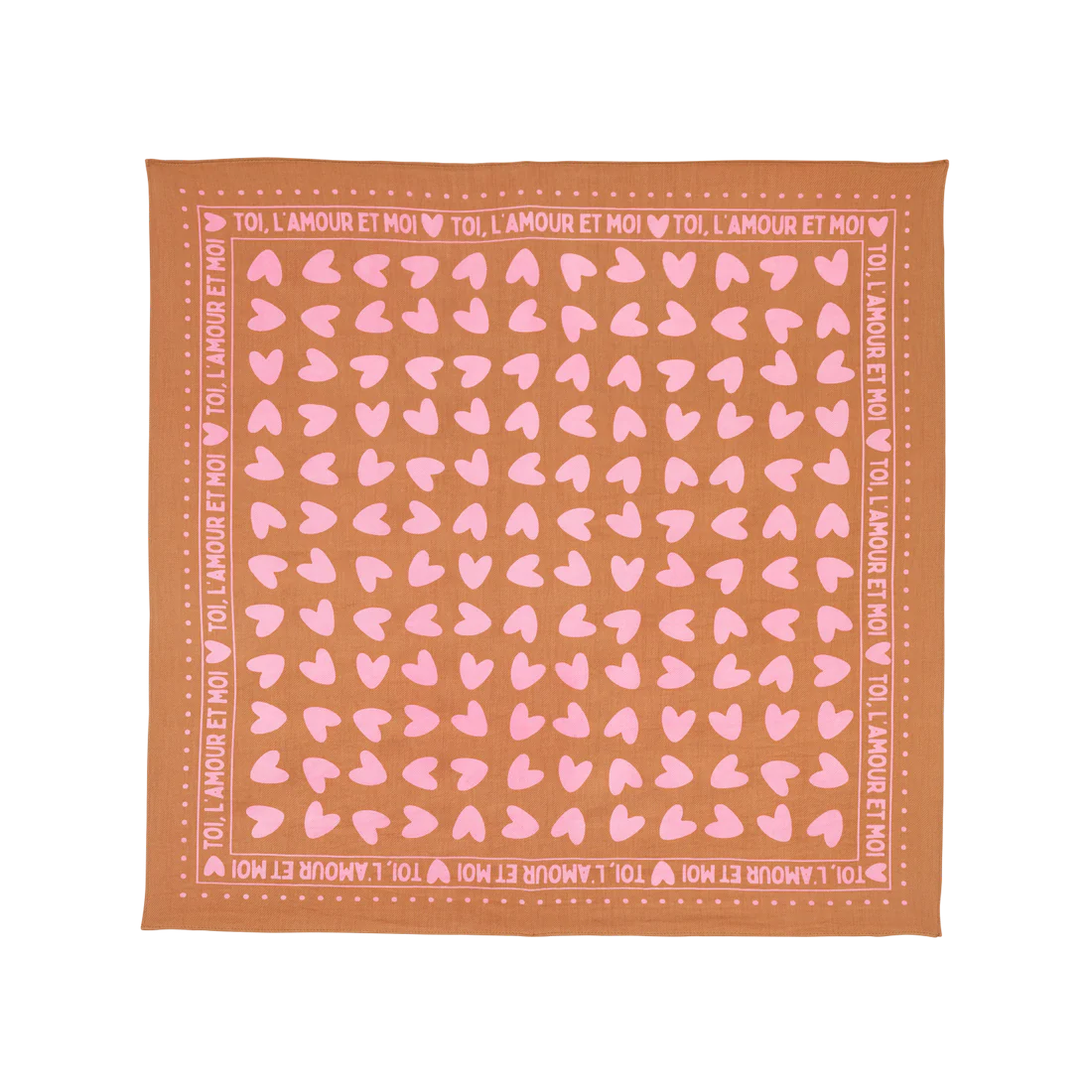 Atelier Wagram – Foulard 55 cm marron cœur rose