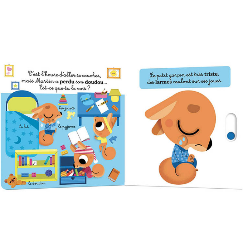 – Un imagier animé de mécanismes et de flaps pour découvrir les émotions. Chaque mécanisme est simple à activer.