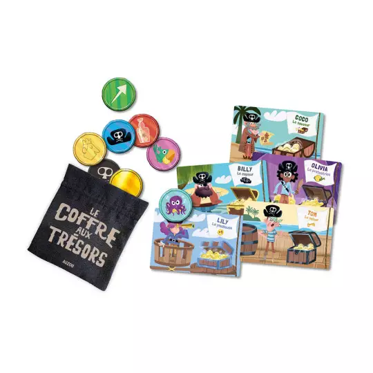 Jeu du coffre aux trésors – Aventure de pirates dès 4 ans Pars à la chasse aux pièces d’or dans ce jeu mêlant chance et tactique ! Collecte un maximum de trésors tout en déjouant les plans des autres pirates. Simple, amusant et stratégique, idéal pour les petits aventuriers dès 4 ans.