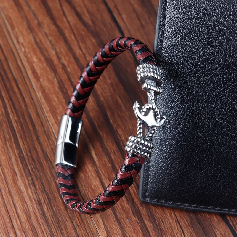 Ce bracelet fin en cuir tressé bicolore est agrémenté d’une breloque en forme d’ancre en acier inoxydable, symbolisant l’élégance et la robustesse. Le fermoir magnétique assure une fermeture sécurisée tout en facilitant son utilisation. Ce design intemporel s’adapte parfaitement aux hommes recherchant un accessoire à la fois classique et décontracté.