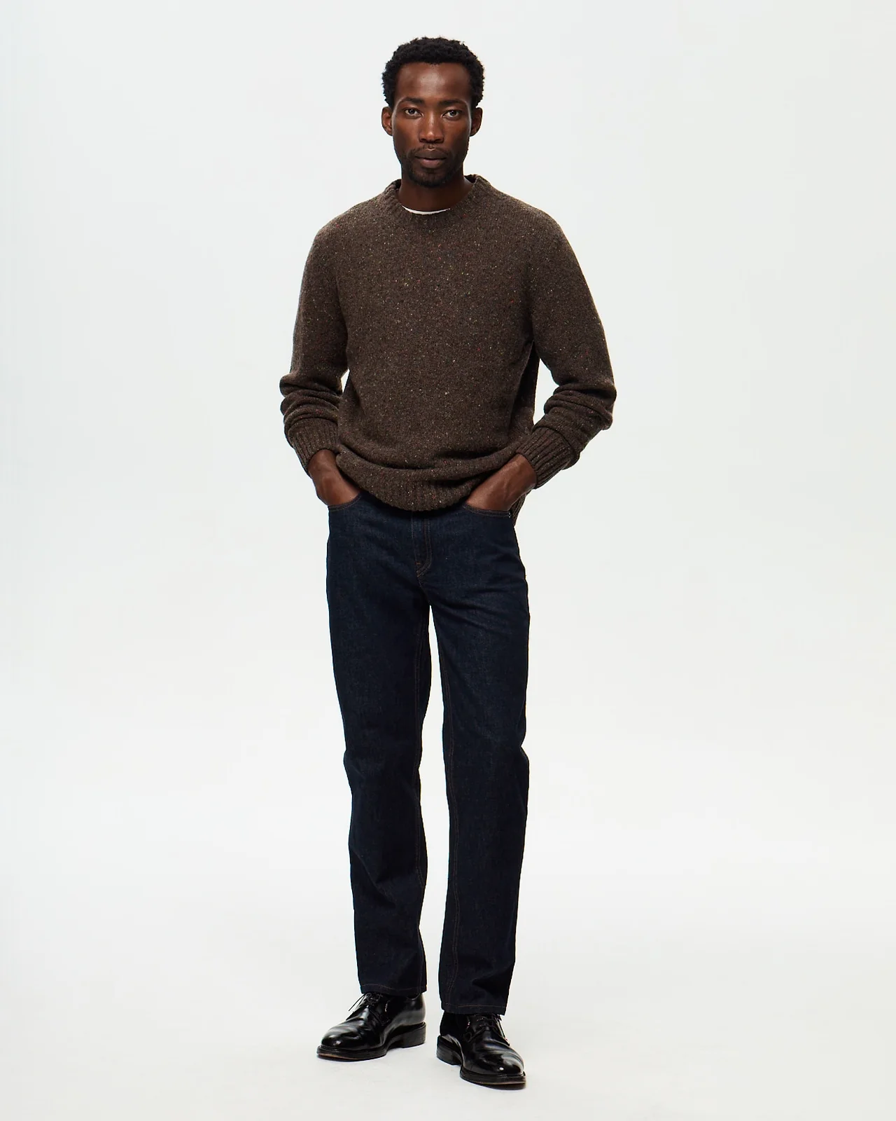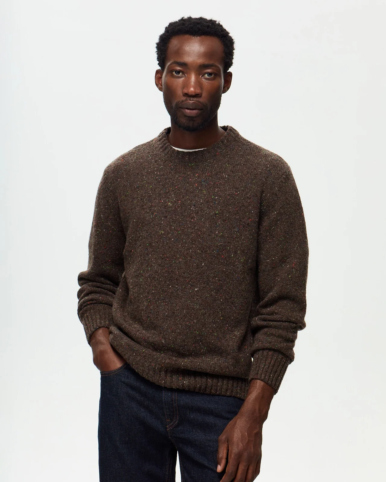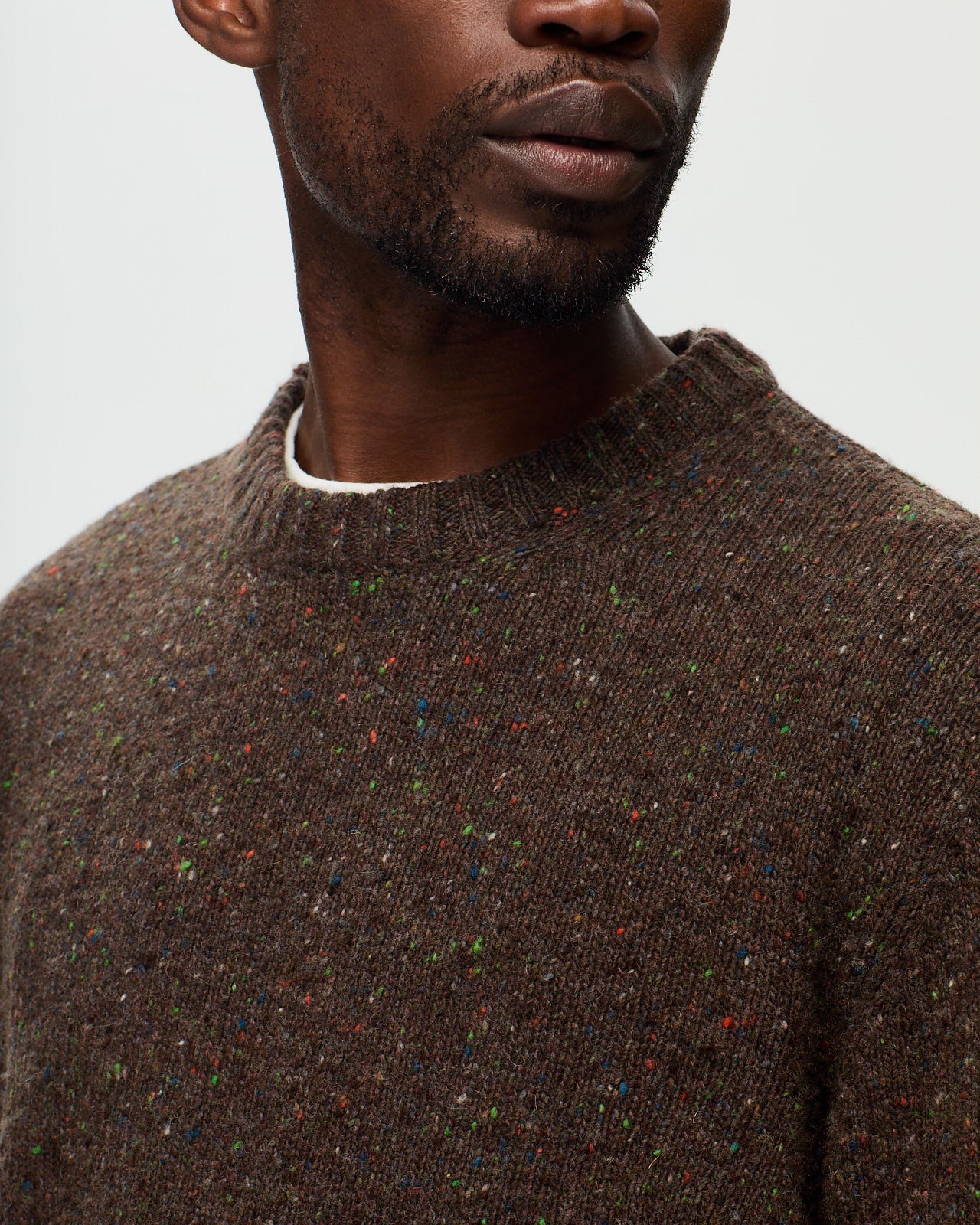 Une maille d’hiver. Une jauge 5 épaisse et dense qui procure chaleur et confort au porté. Un tricotage en point jersey qui met en avant le relief du fil boutonné. Un choix de coloris profonds avec un contraste apporté par les parties boutonnées du fil. Une irrégularité du fil qui apporte du relief au tricotage pour un rendu arty. Fil italien, tricoté en Toscane près de Florence.