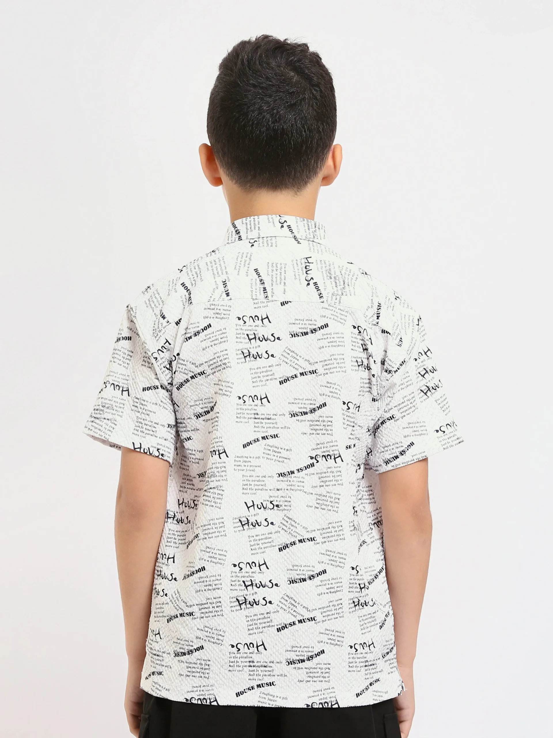 Chemise enfant blanche avec imprimé HOUSE MUSIC – SSH25SAUC19504TB1