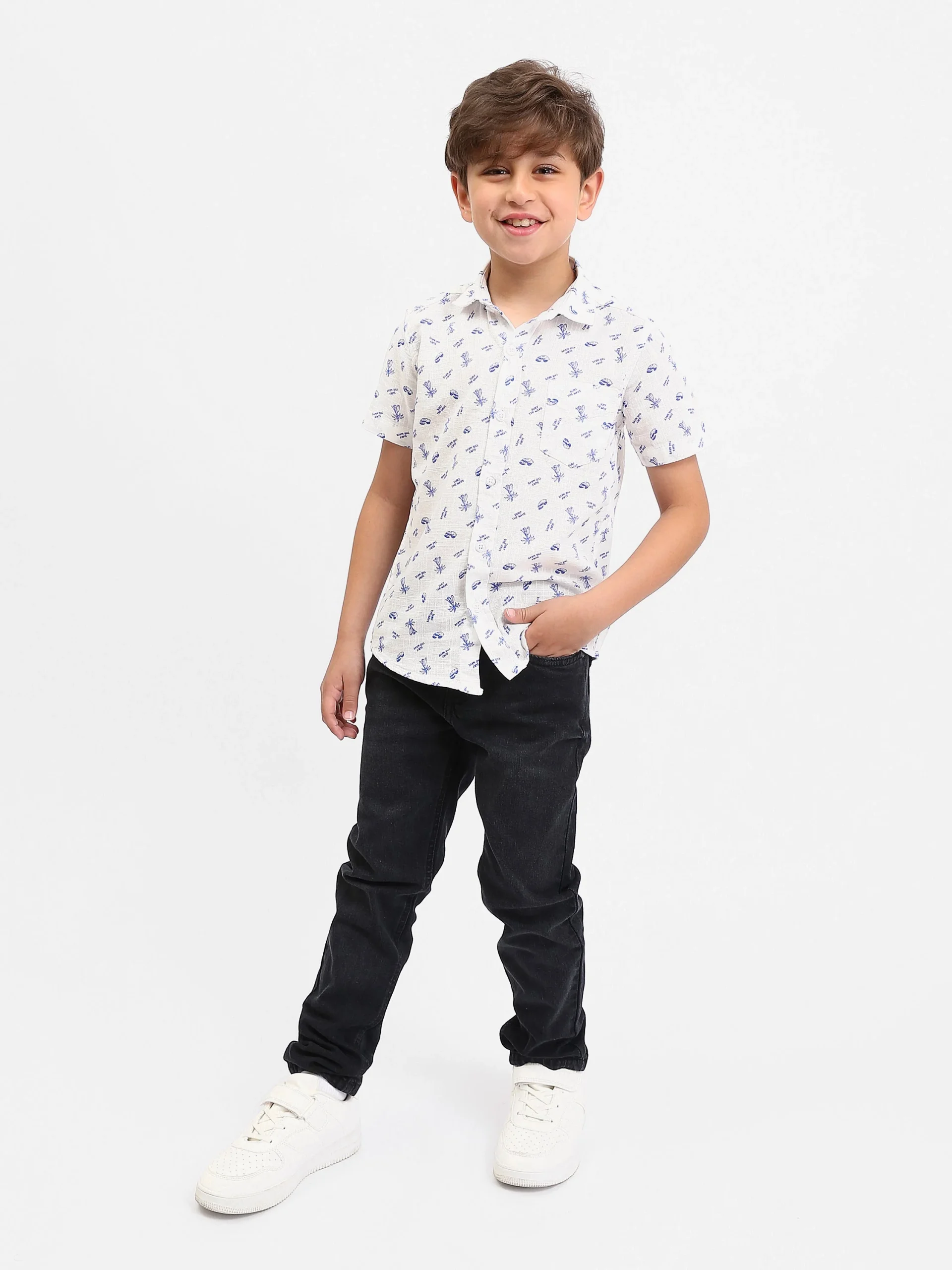 Chemise garçon à manches courtes imprimée, style casual – SSH25SAER76471MB1