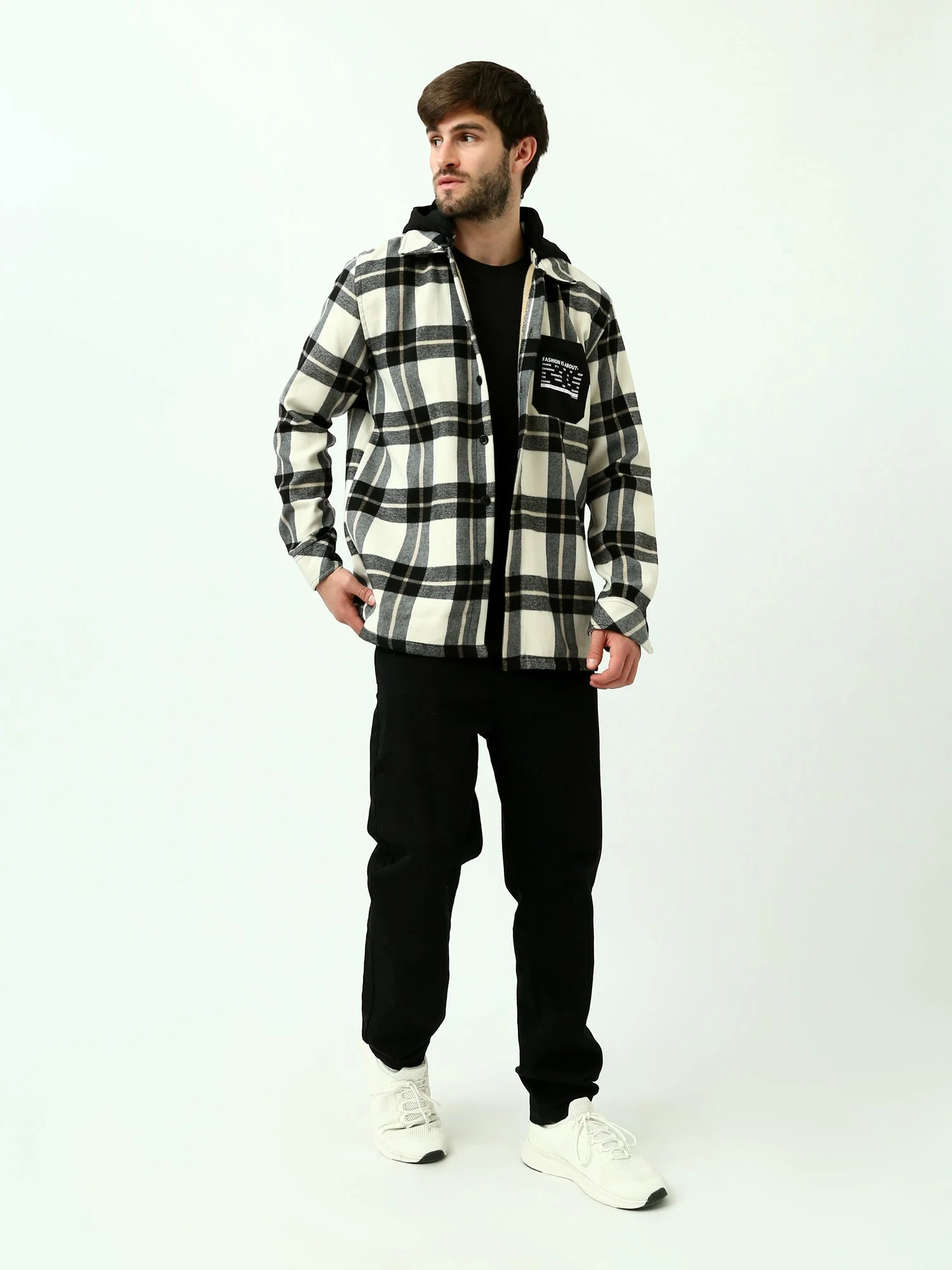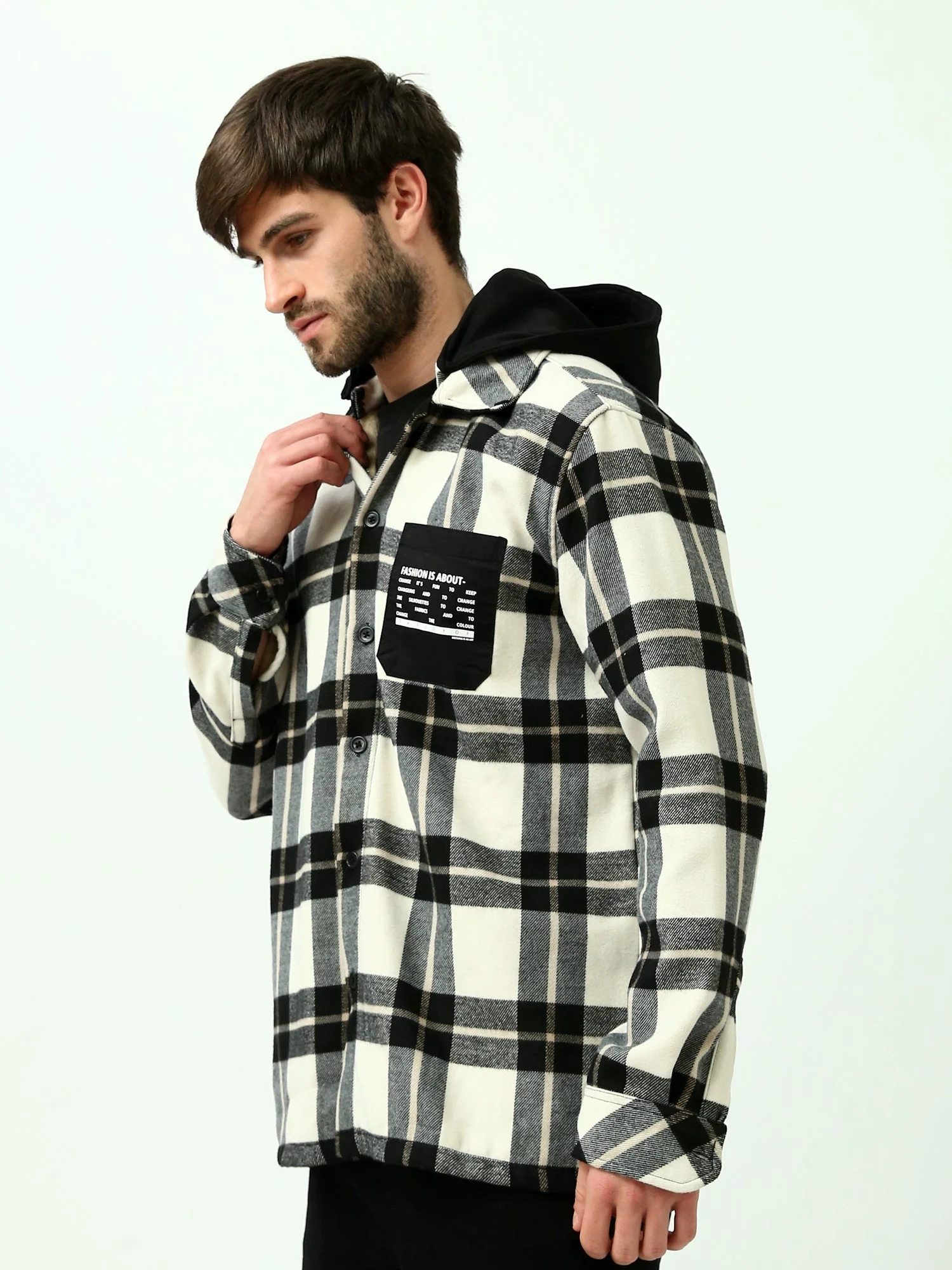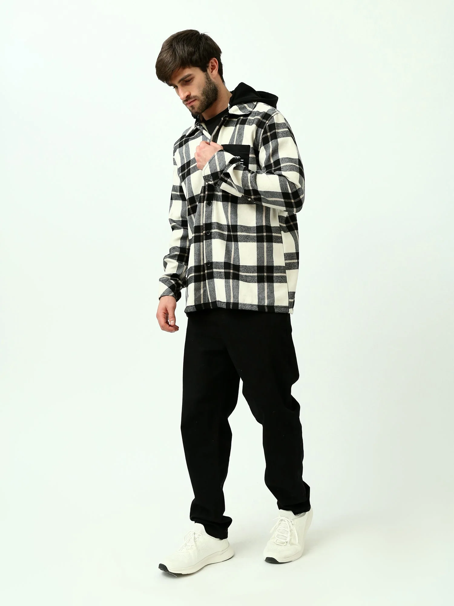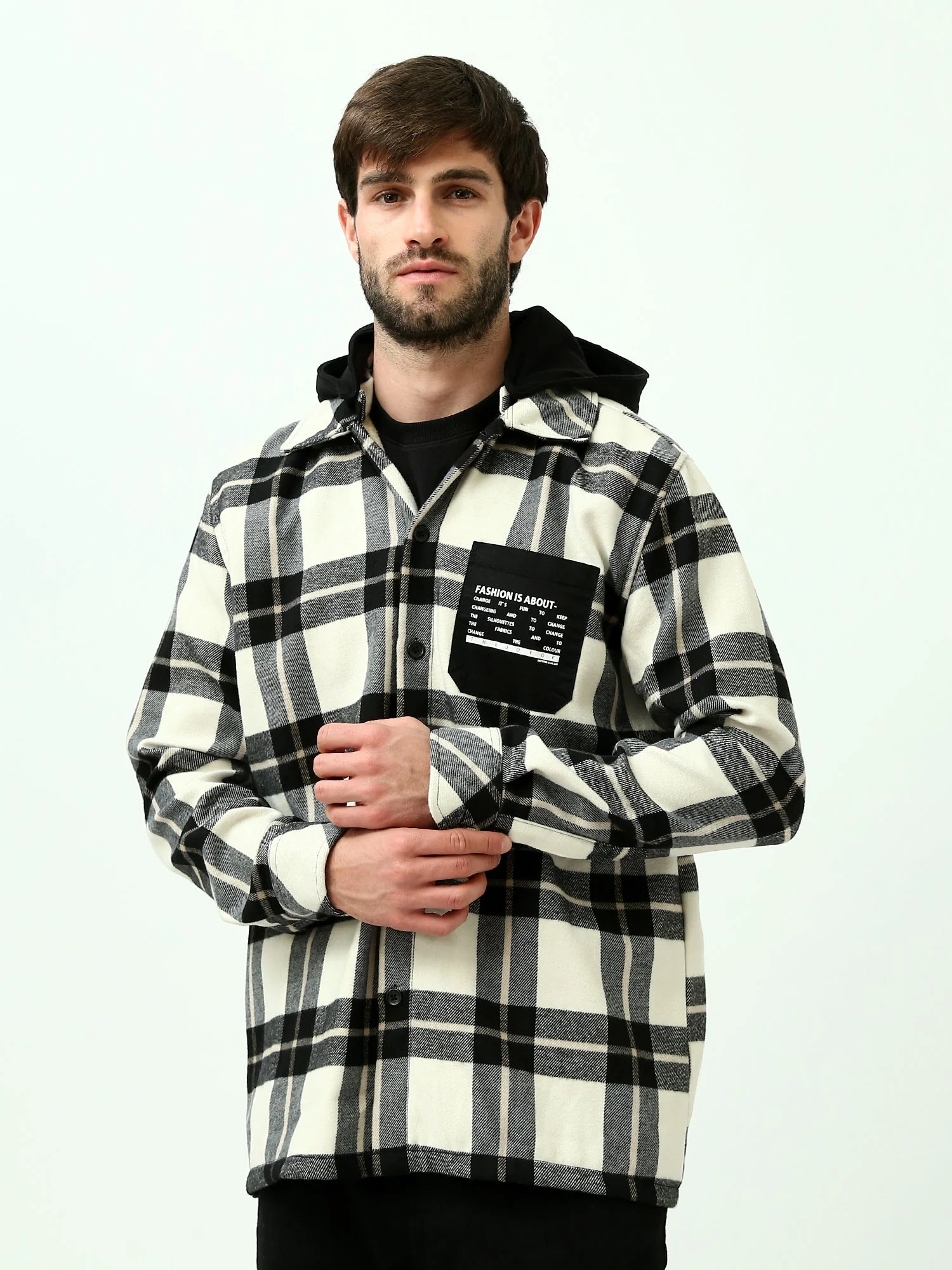 Chemise à carreaux oversize homme avec capuche – Style décontracté et tendance – OSH23ACCR19838TM1