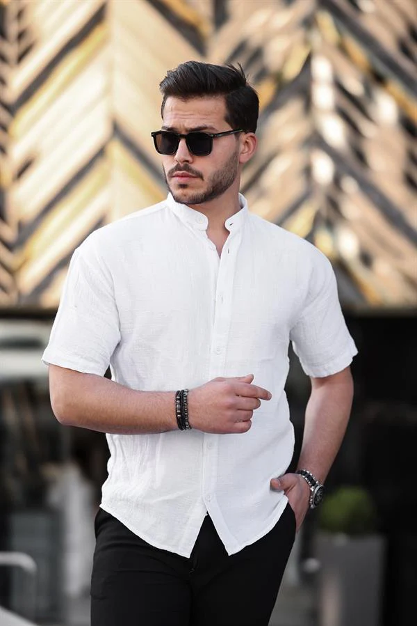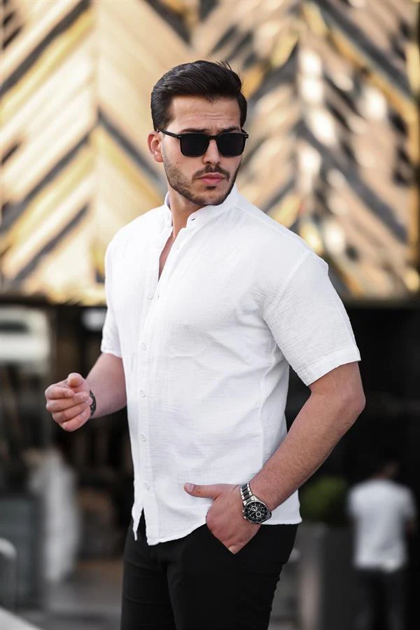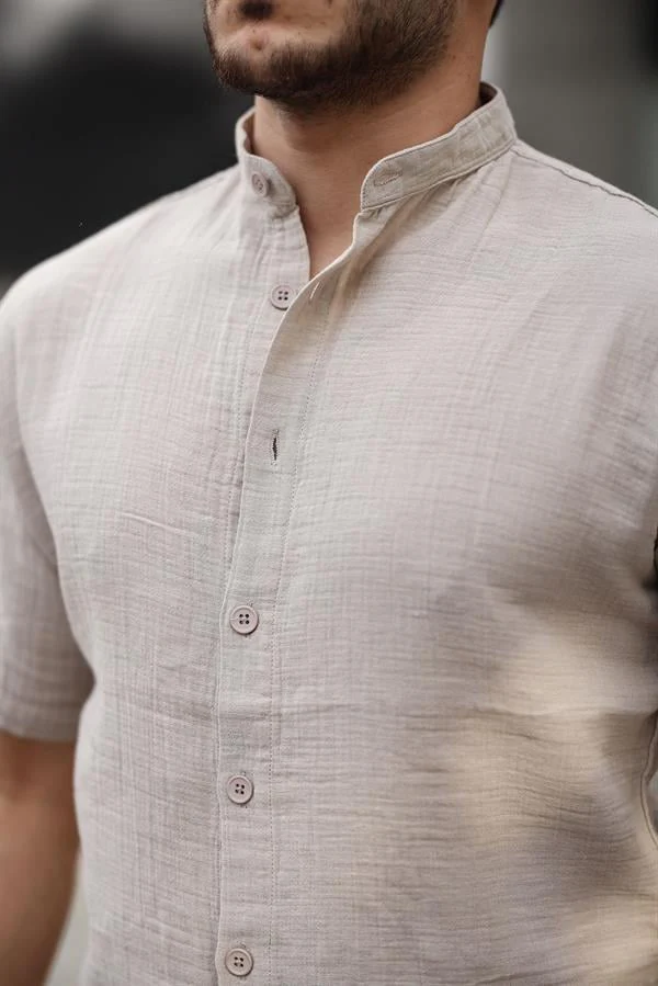 Découvrez la chemise homme à col mao en coton mousseline à manches courtes, une pièce qui allie style intemporel et confort respirant. Confectionnée dans un tissu 100 % coton mousseline léger et doux, cette chemise procure une sensation aérée et fraîche, idéale surtout par temps chaud.