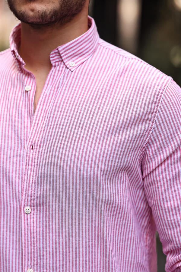 Chemise homme en lin flam rayée à bandes verticales, conçue pour offrir une élégance naturelle et un confort léger au quotidien. Sa texture flam subtile apporte du relief au tissu et un rendu authentique, parfait pour un style moderne et soigné.