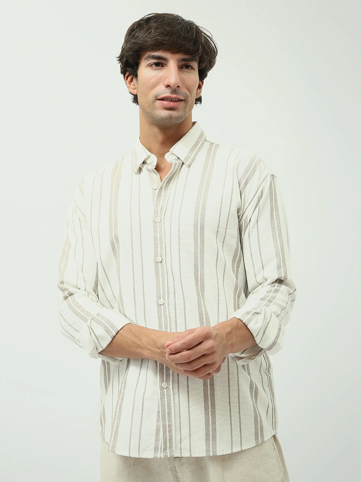 Cette chemise pour homme à rayures se distingue par ses couleurs chaudes, apportant une touche élégante et chaleureuse à votre tenue. Confortable et agréable à porter, elle est idéale pour le quotidien, les sorties ou un style casual chic.
