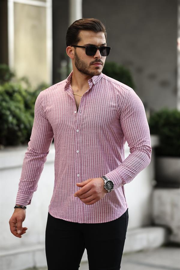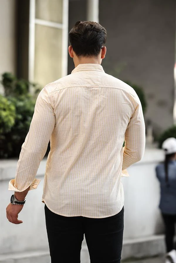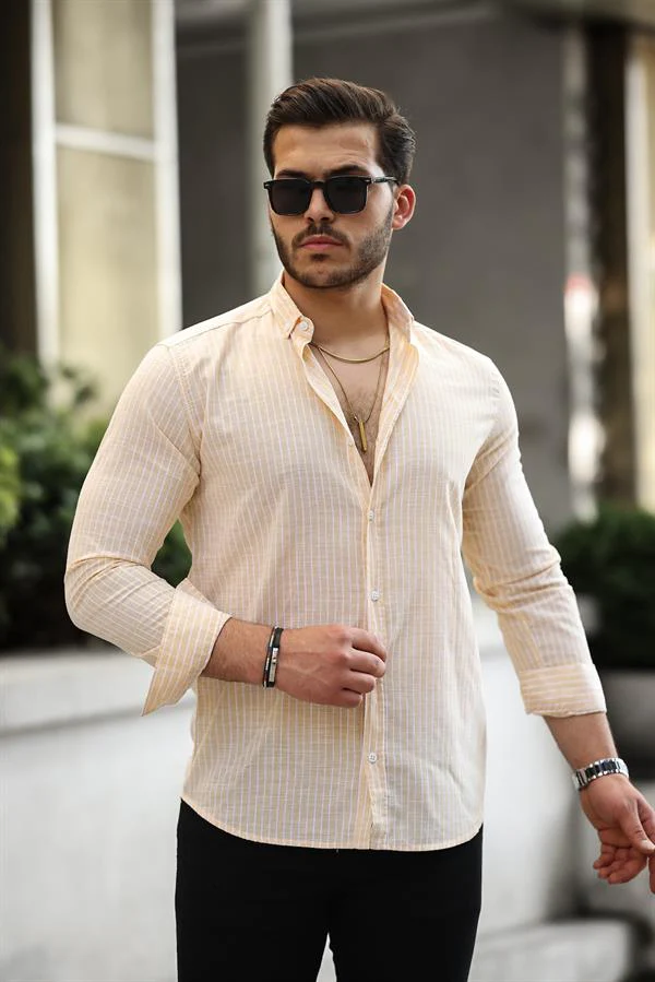 Chemise homme rayée en coton manches longues Carina