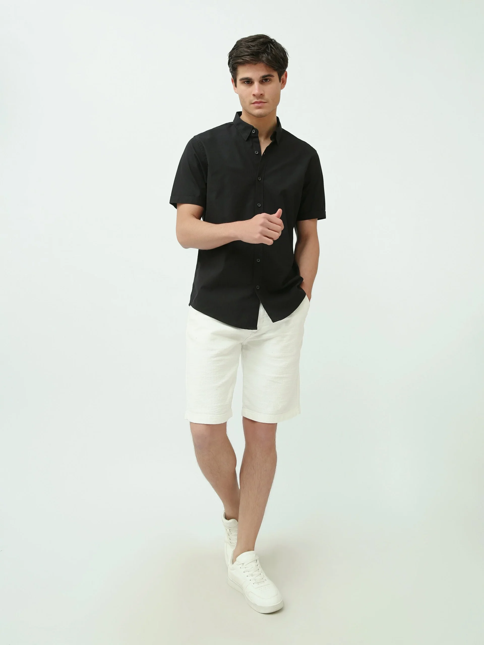 Chemise Homme Slim Fit – Couleurs Noir et Off-White – SSH25SECR16110TM1