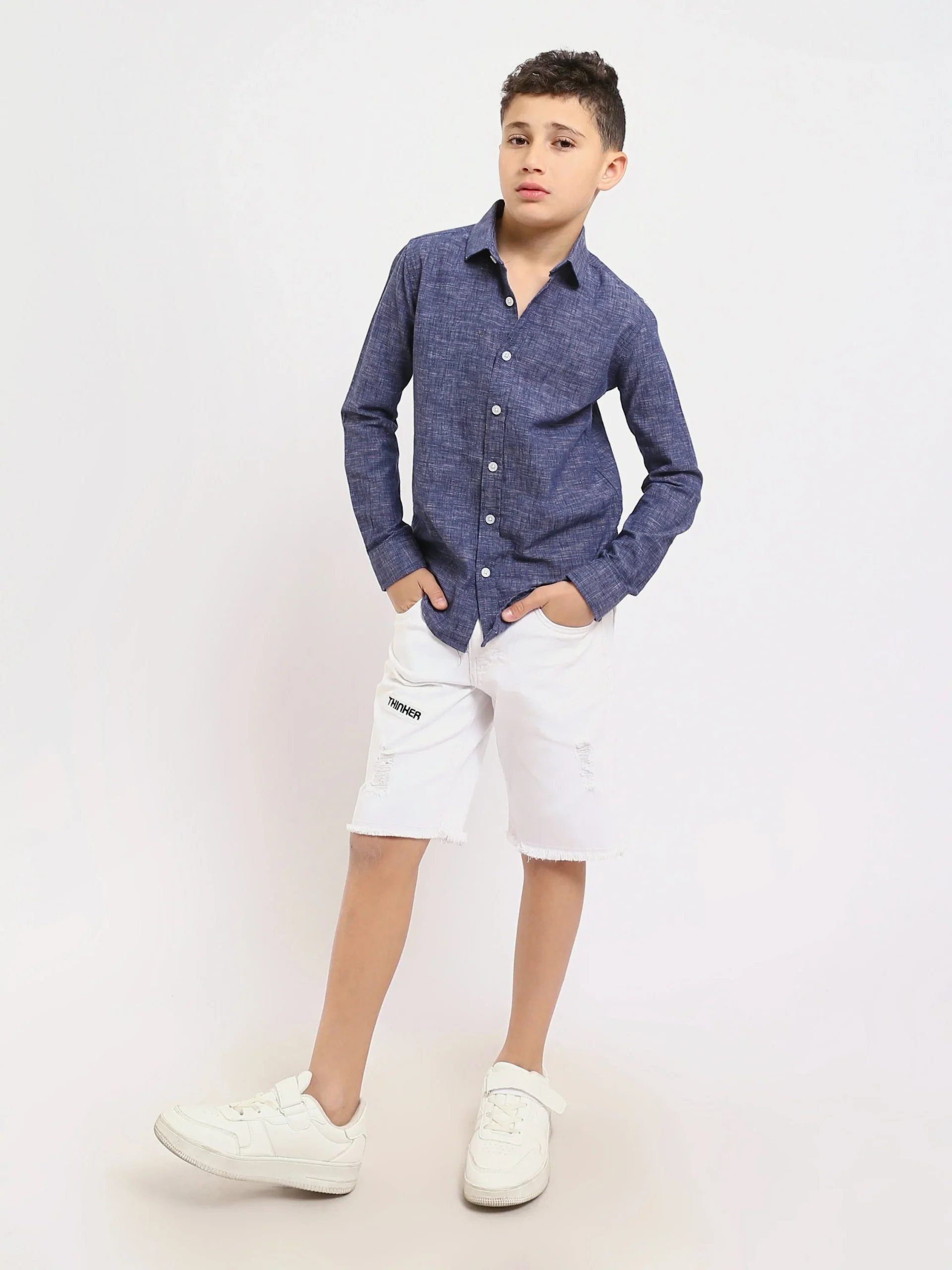 Chemise pour enfants de couleur bleu marine, au design moderne et élégant avec des boutons sur le devant.Fabriquée dans un tissu léger et confortable, cette chemise est idéale pour les looks quotidiens ou les occasions décontractées. Avec son design simple et confortable, elle se coordonne facilement avec un pantalon en jean ou un short pour […]