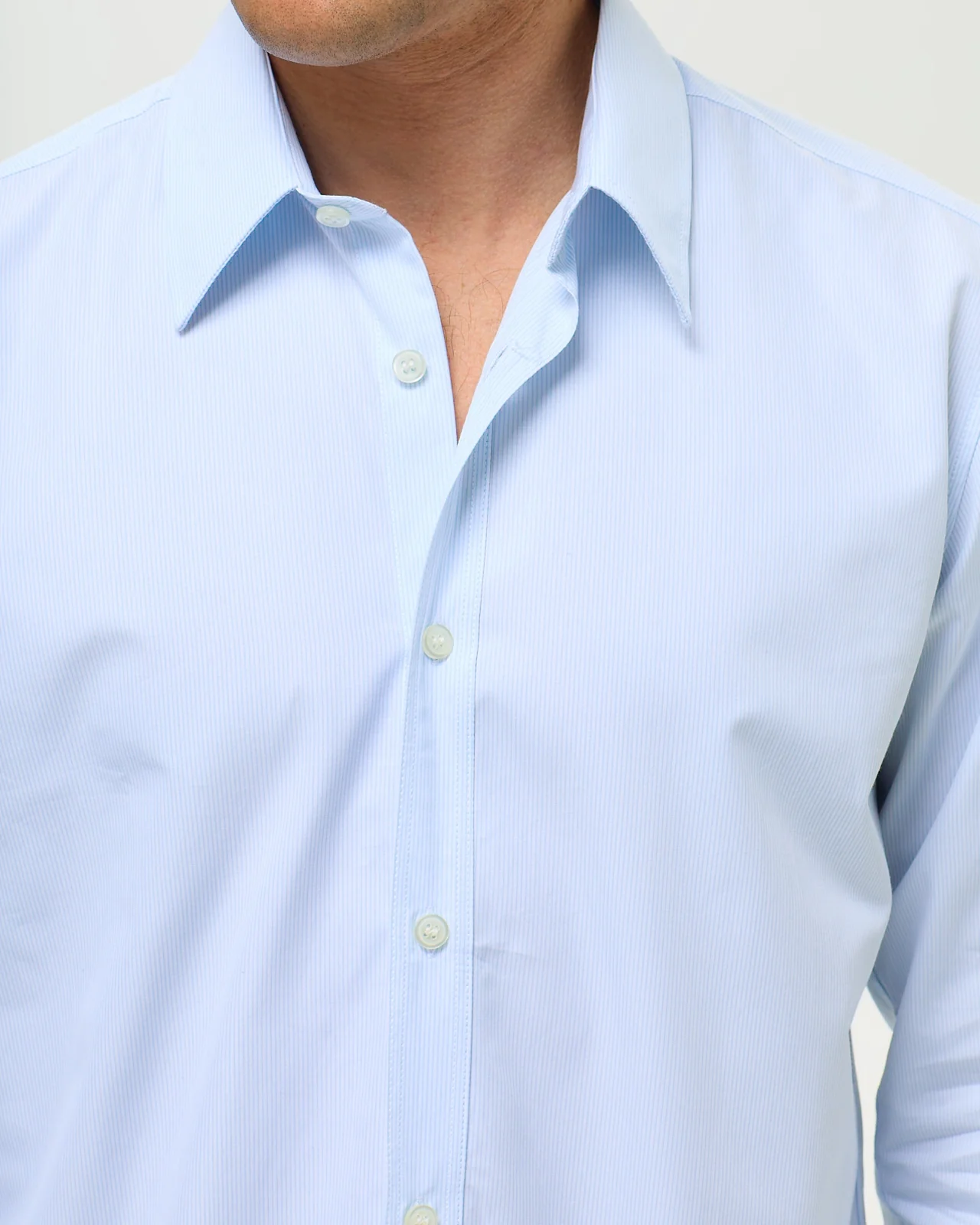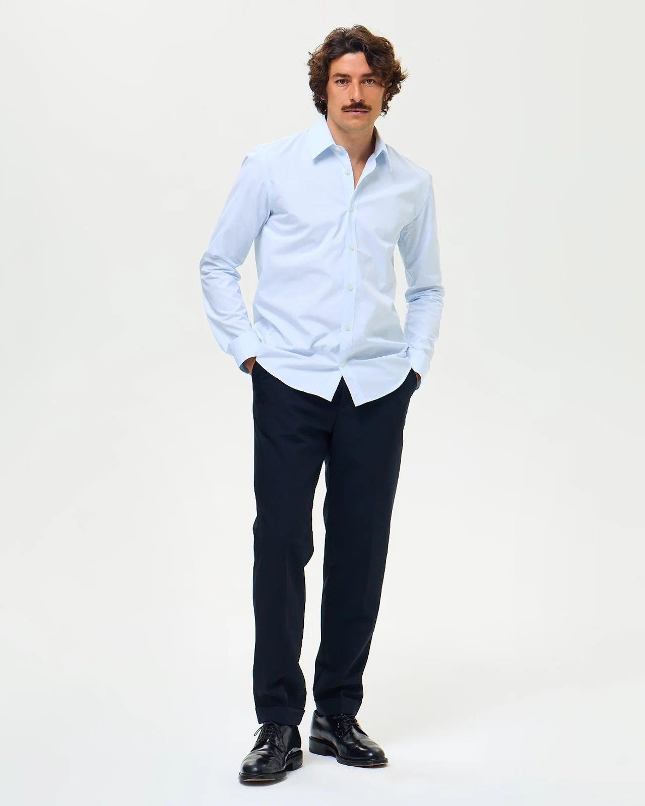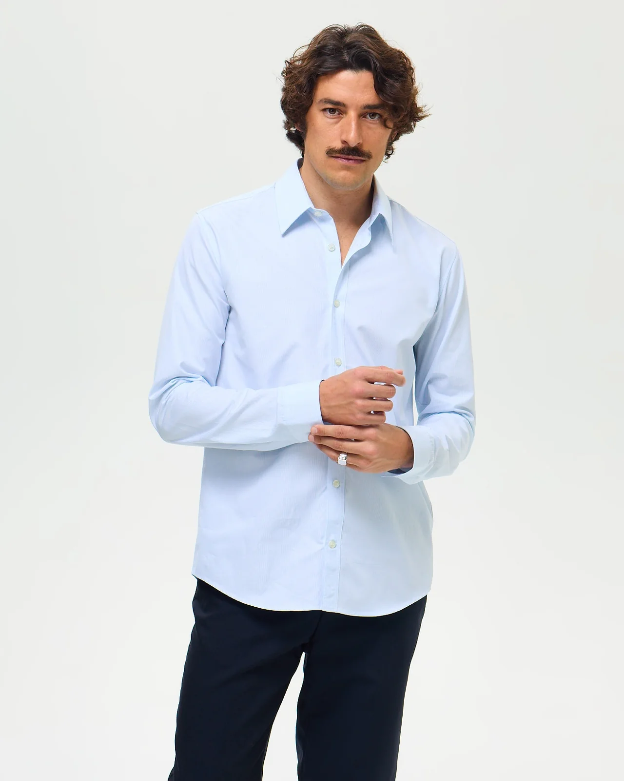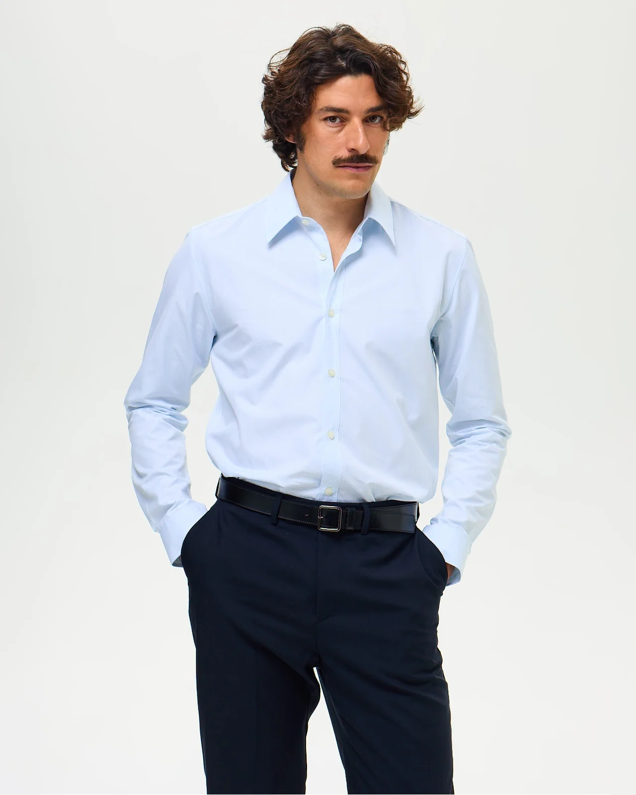 La chemise formelle à rayures qui structure le vestiaire avec élégance. Son col semi italien apporte une prestance naturelle, tandis que sa coupe droite s’harmonise parfaitement à toutes les morphologies. Les rayures fines créent un contraste subtil qui dynamise la silhouette, dans un tissu espagnol tissé depuis 1953 qui perpétue un savoir-faire d’exception. Un classique qui traverse les époques. Fabrication marocaine.