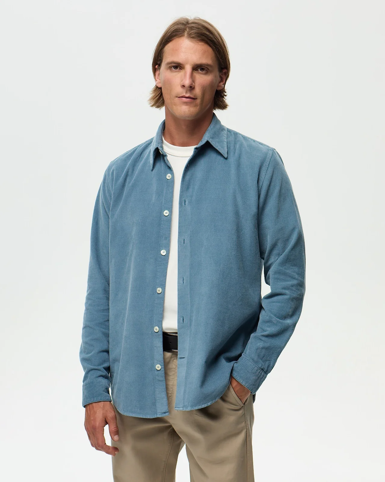 La chemise en velours côtelé dans sa version azur lumineuse. Tissée en Espagne chez un fabricant historique depuis 175 ans, cette matière 100% coton organique révèle un côtelé fin qui apporte subtilité et fluidité. Sa coupe droite épouse naturellement toutes les morphologies, tandis que les deux poches plaquées poitrine ajoutent une touche fonctionnelle et esthétique. Un coloris riche et saisonnier qui illumine le vestiaire. Fabrication marocaine.