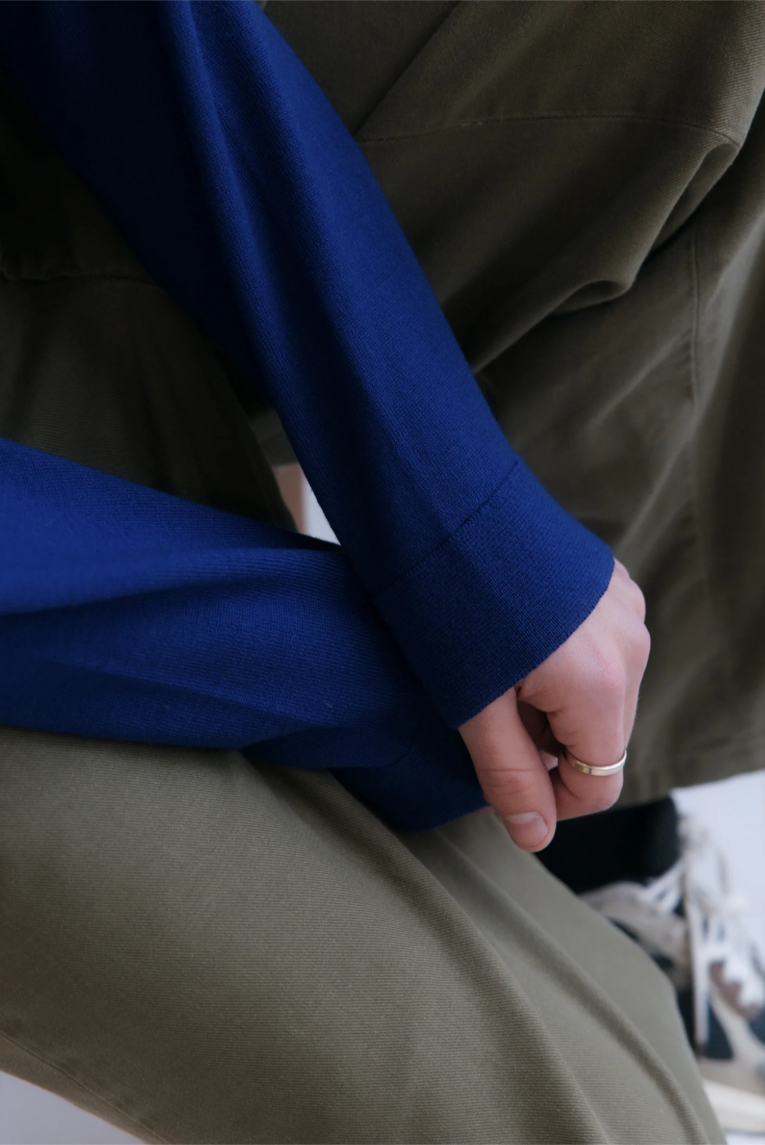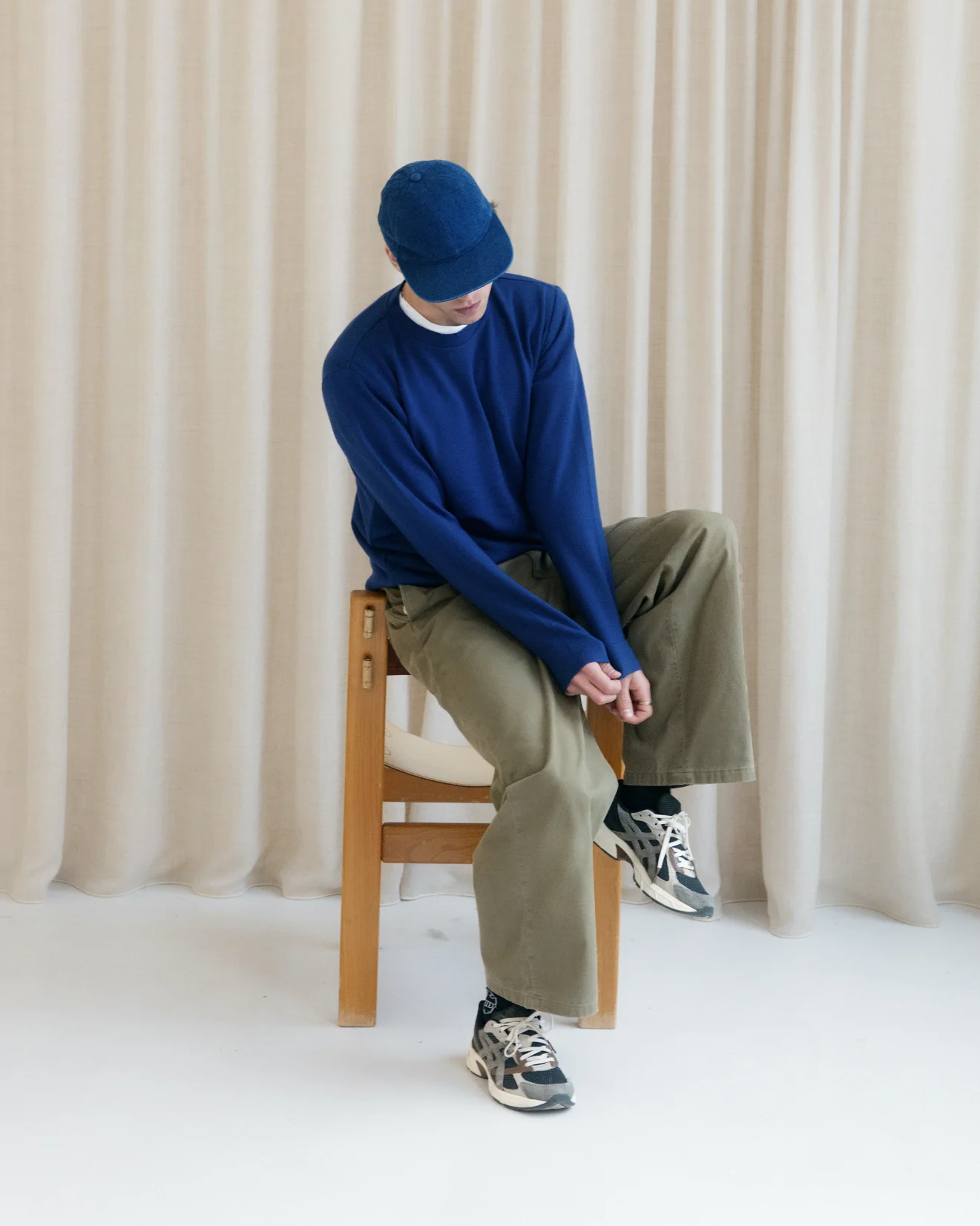 Le bleu profond fonctionne avec du noir, du gris ou des tons clairs. C’est une pièce facile à intégrer, qui s’adapte à chaque occasion avec sobriété, confort et élégance.