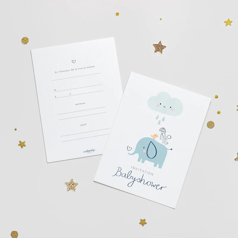 Cubeely – Lot de 8 cartes invitations Babyshower Eléphant