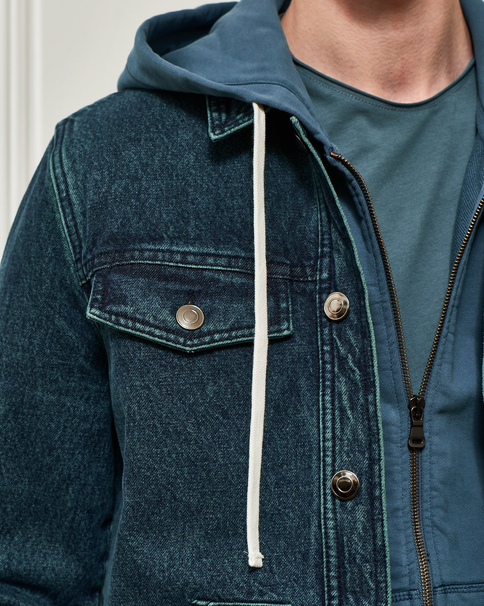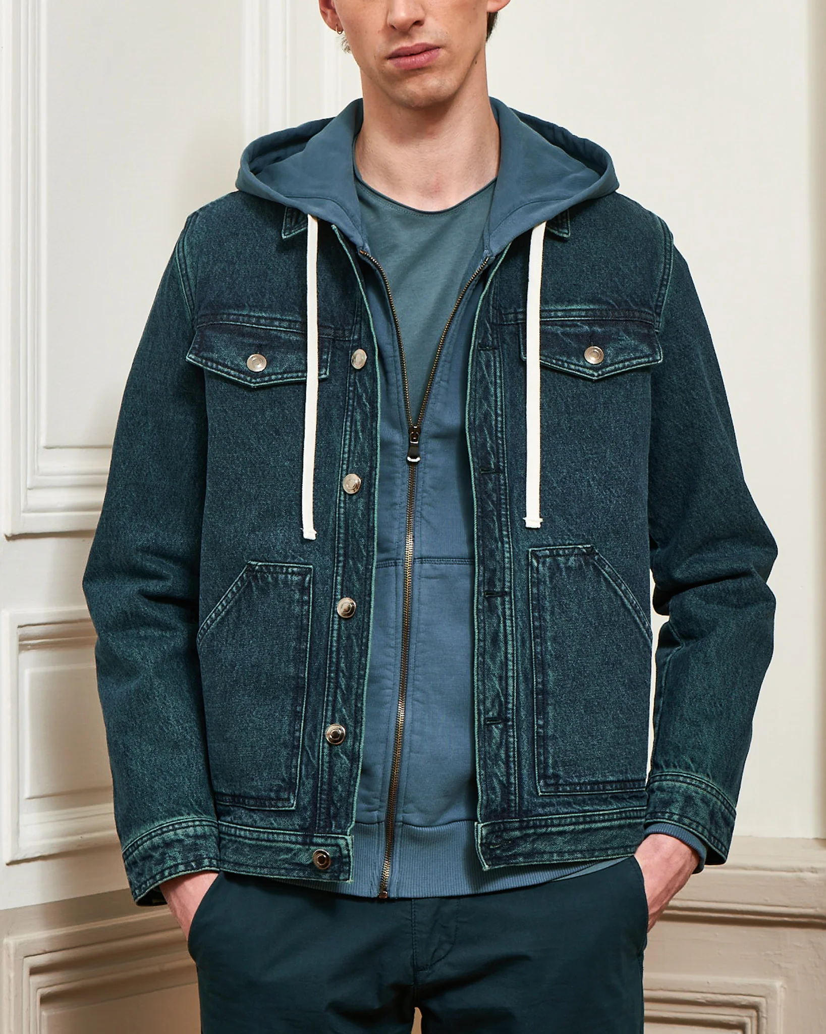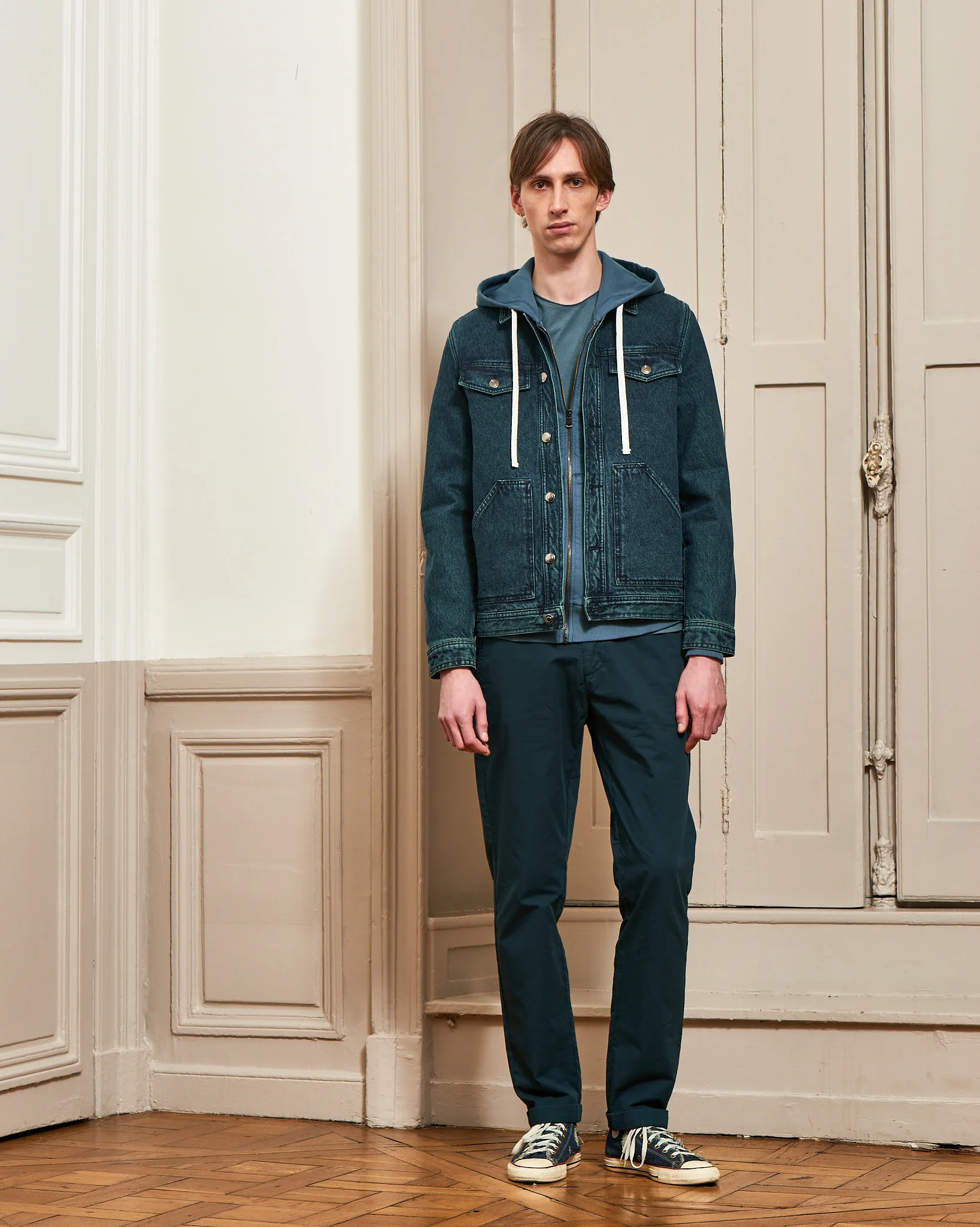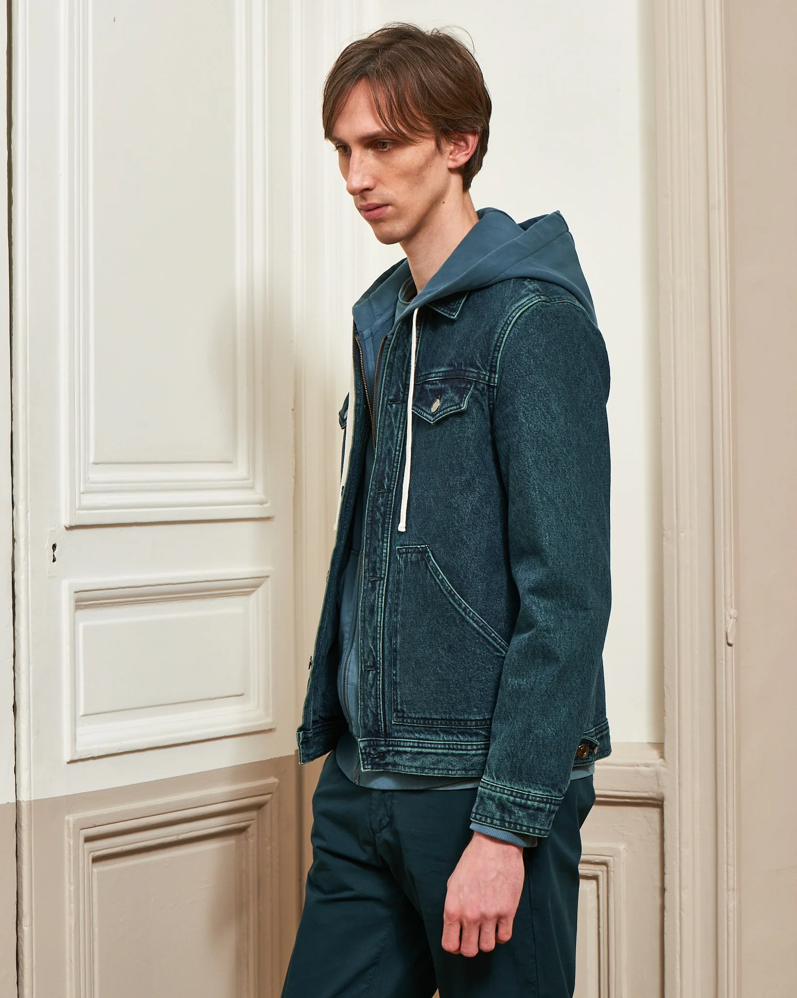 Avec le Degas, nous vous proposons un blouson au porté structuré et au jeu de poches plaquées et à rabats. Il a été confectionné ici dans un denim surteint pour obtenir cette nuance Prusse créée spécifiquement pour Lafaurie. Vous remarquerez ses détails « denim » comme ses boutons et sa patte de serrage en bas de corps.
