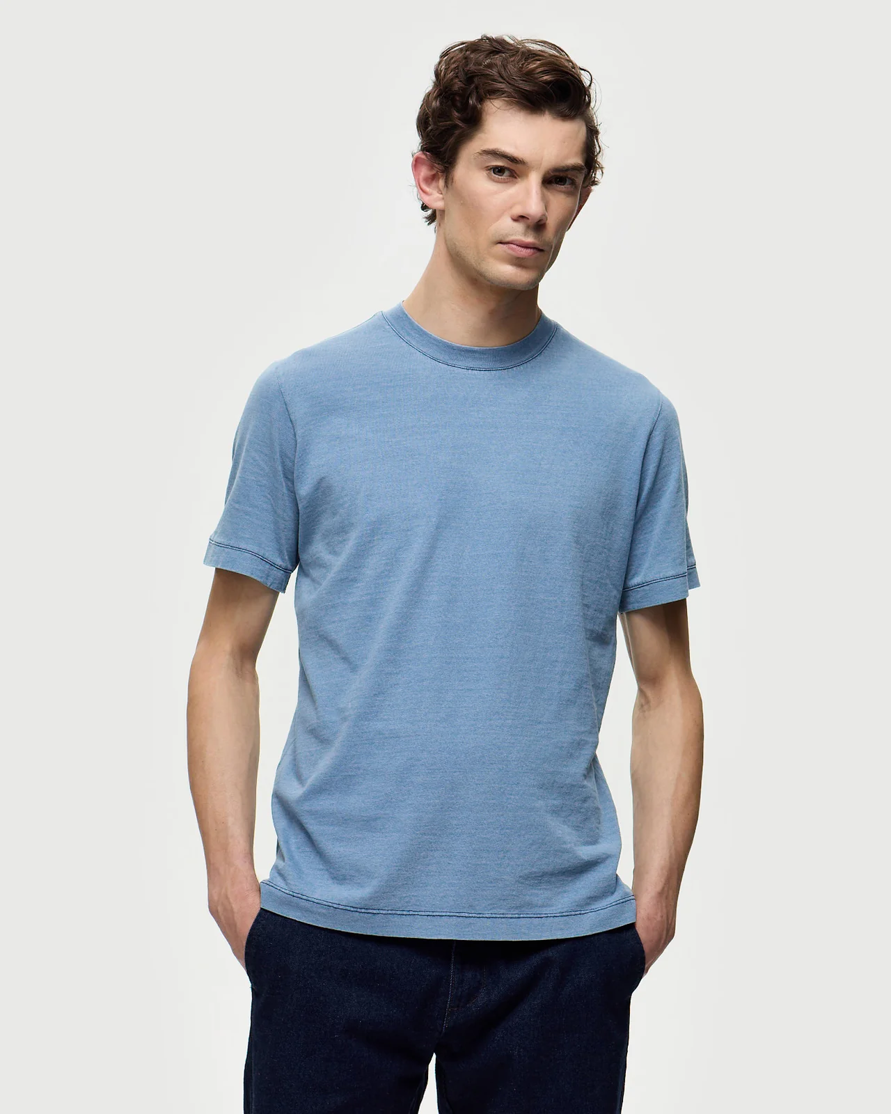 Le retour du t-shirt en indigo. Pigment indigo intemporel qui traverse les époques avec caractère. Un coton 140 gr/m2 léger et durable, parfait pour toutes les saisons. Une coupe droite qui s’adapte à toutes les morphologies. Un coloris qui apporte du relief à votre tenue sans effort. Tissu espagnol, fabrication portugaise.