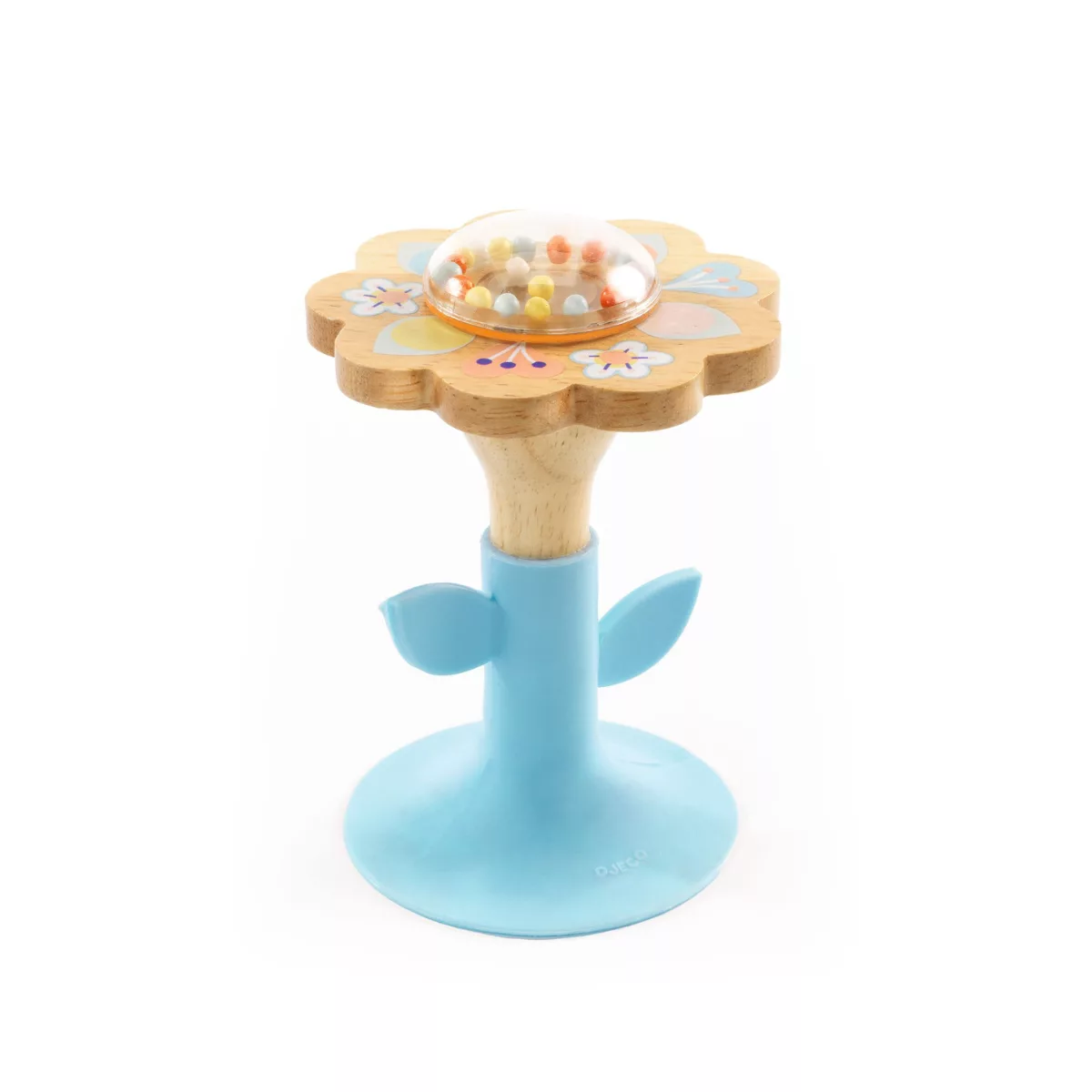 Au centre de ce jouet, une tige souple relie une fleur en bois naturel à une base en silicone équipée d’une ventouse. Cette conception ingénieuse permet à l’enfant de tapoter, faire tourner ou incliner la fleur sans qu’elle ne tombe ou se déplace, garantissant des heures de jeu en toute sécurité. Le cœur transparent de la fleur, rempli de billes colorées, capte l’attention de bébé en produisant un doux bruit lorsqu’elle tourne.