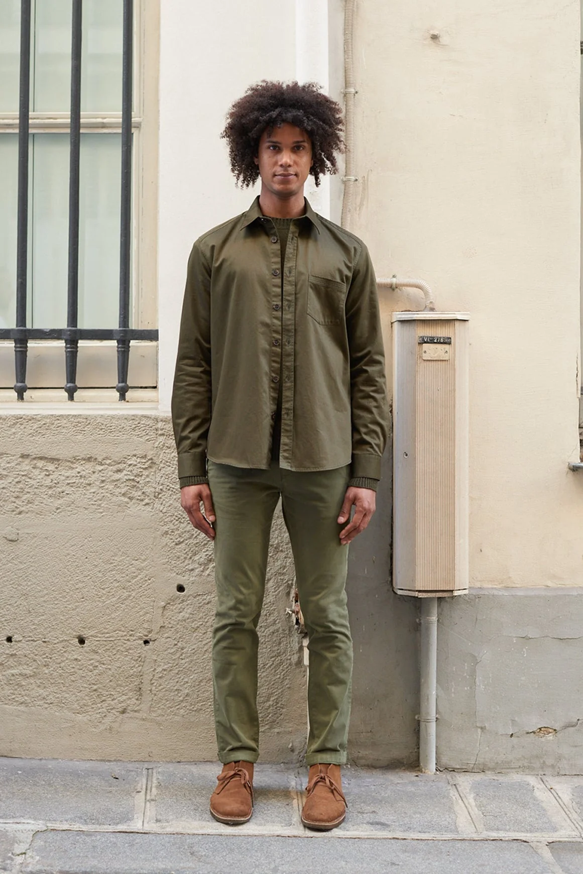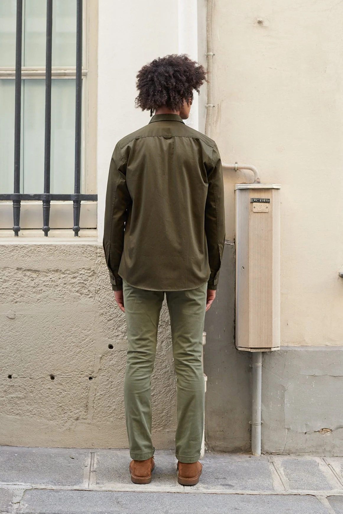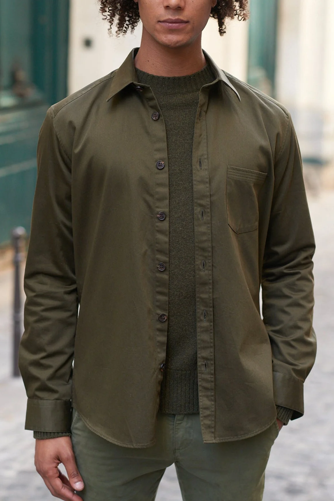 Découvrez EILEEN, notre chemise militaire moderne. Sa coupe droite, légèrement oversized, à la manière d’une surchemise, ainsi que ses empiècements aux épaules, lui donnent un aspect militaire. Fabriquée en satin de coton mat, cette chemise offre une belle structure élégante et sophistiquée. La chemise EILEEN est parfaite pour un style tendance et polyvalent.