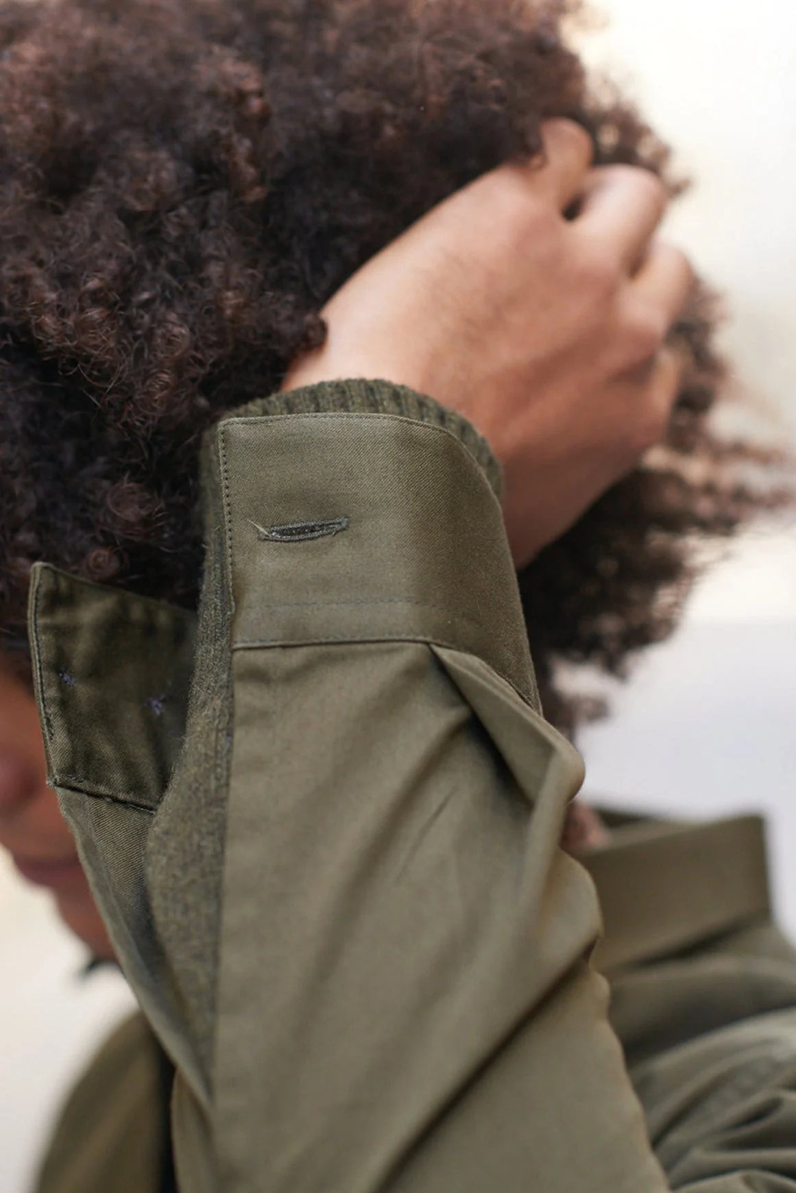 Sa coupe droite, légèrement oversized, à la manière d’une surchemise, ainsi que ses empiècements aux épaules, lui donnent un aspect militaire.