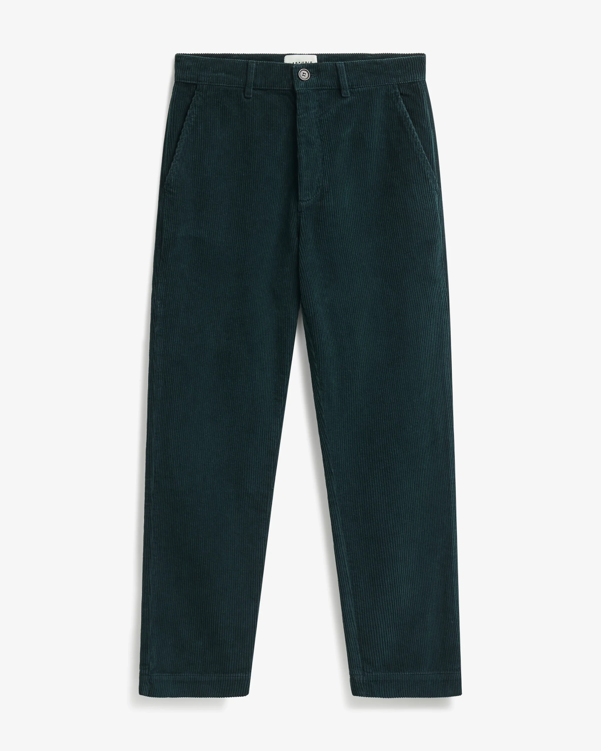 Le chino en velours parfait pour l’hiver, l’original du vestiaire. Tissu français fabriqué dans une manufacture préservée au pied du parc régional des Ballons des Vosges. Velours de 390g/m2 aux côtes moyennes, facile à porter toute l’année. Coupe droite ajustée, confortable et facile pour toutes les morphologies. Coloris vert cèdre exclusif développé par Lafaurie. Teinture écologique respectueuse de l’environnement. Fabrication marocaine.