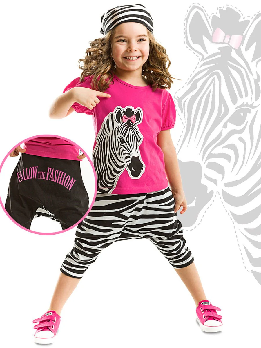 Ensemble 2 pièces filles – T-shirt imprimé zèbre et pantalon capri