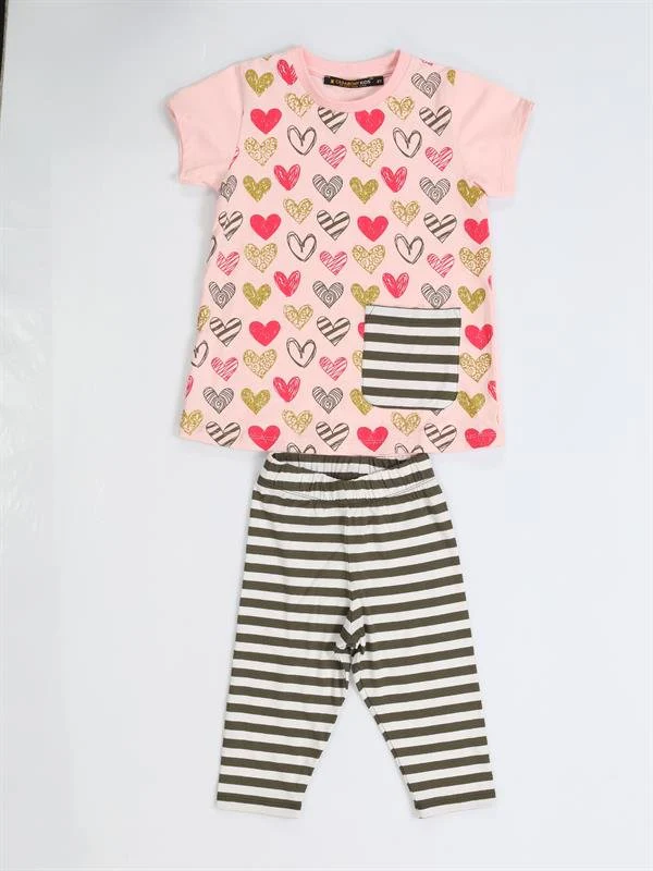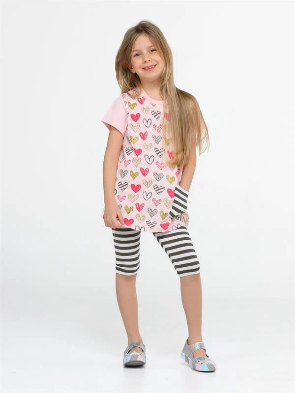 Ensemble tunique cœur imprimé et leggings rayés – Confort et style