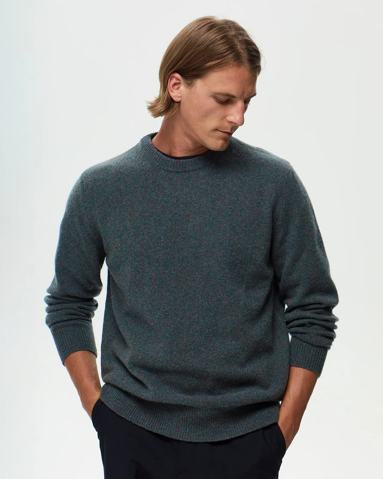 Le pull col rond essentiel en laine recyclée. Fil italien responsable : 45% laine vierge, 35% laine recyclée, 20% polyamide recyclé. Maille jersey La JAUGE 7 au tricotage délicat alliant chaleur et élégance naturelle. Procure chaleur et confort au porté. Coupe droite, emmanchure classique : un essentiel qui fonctionne sur toutes les morphologies. Disponible en coloris sobres et raffinés.