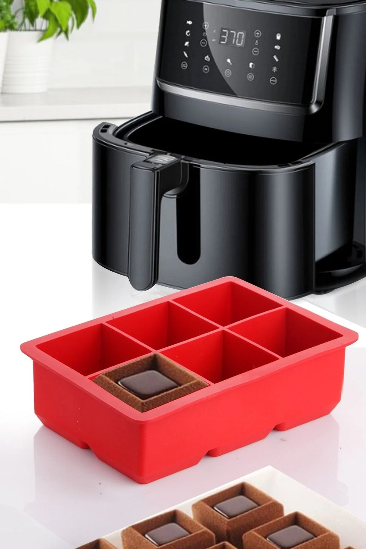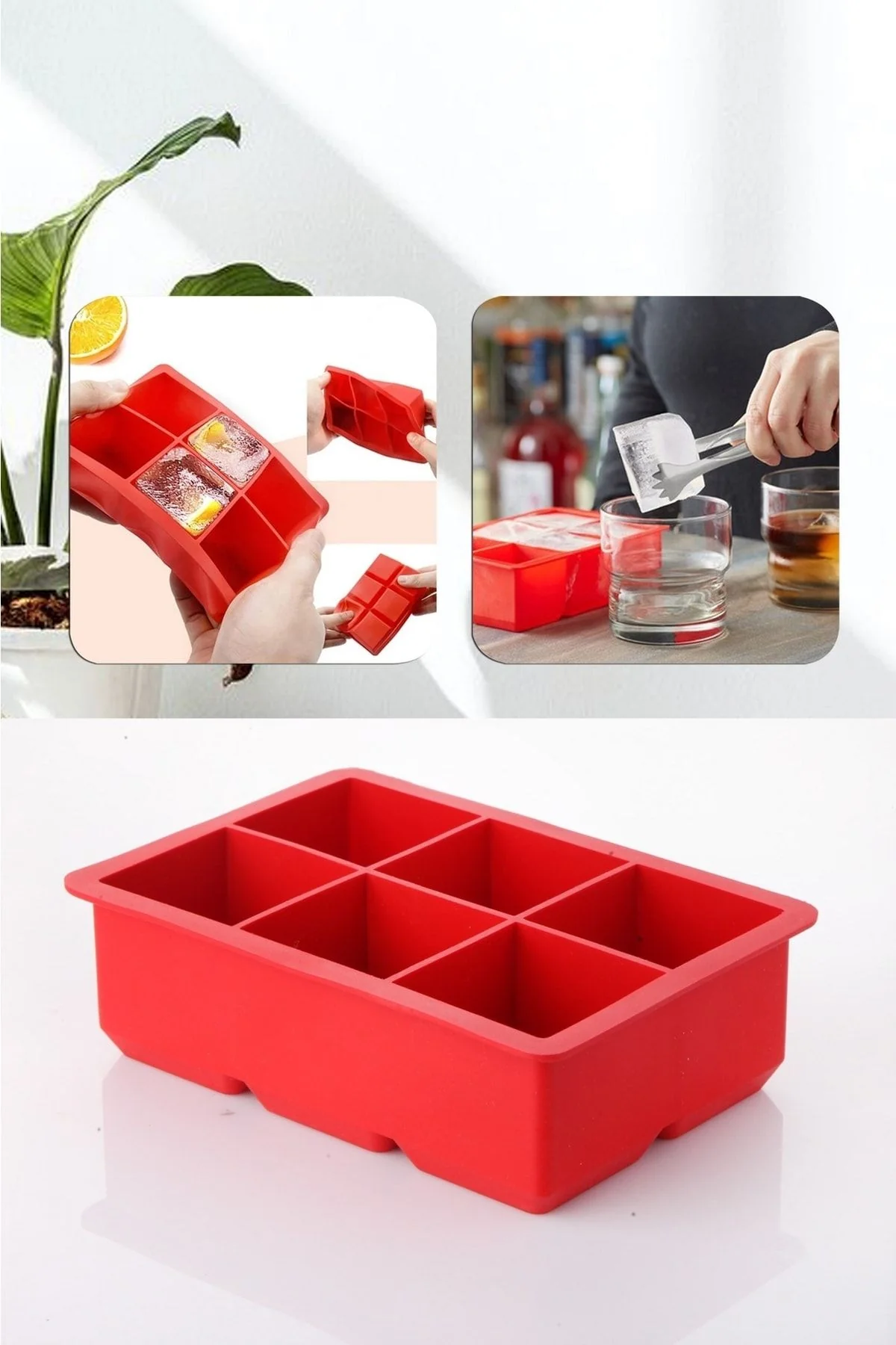 Grand bac à glaçons en silicone à 6 compartiments – moule à glaçons carré en silicone noir (6 cases)