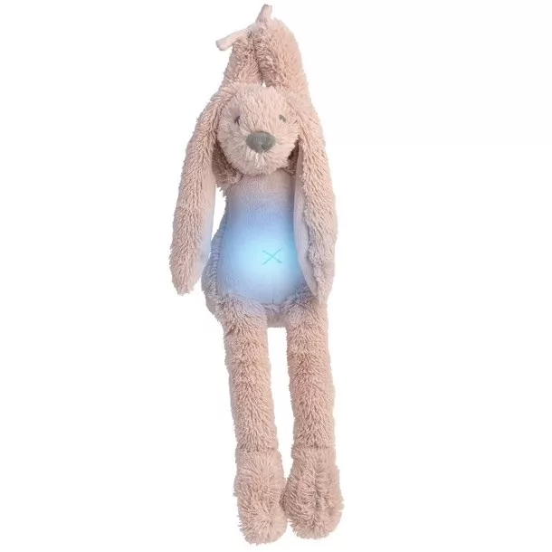 La veilleuse Lapin Richie rose de Happy Horse est une peluche douce et réconfortante qui diffuse une lumière apaisante en cinq couleurs et des sons relaxants (berceuses, bruit blanc, sons intra-utérins). Avec une minuterie ajustable et une batterie rechargeable par USB, elle aide les tout-petits à s’endormir sereinement.