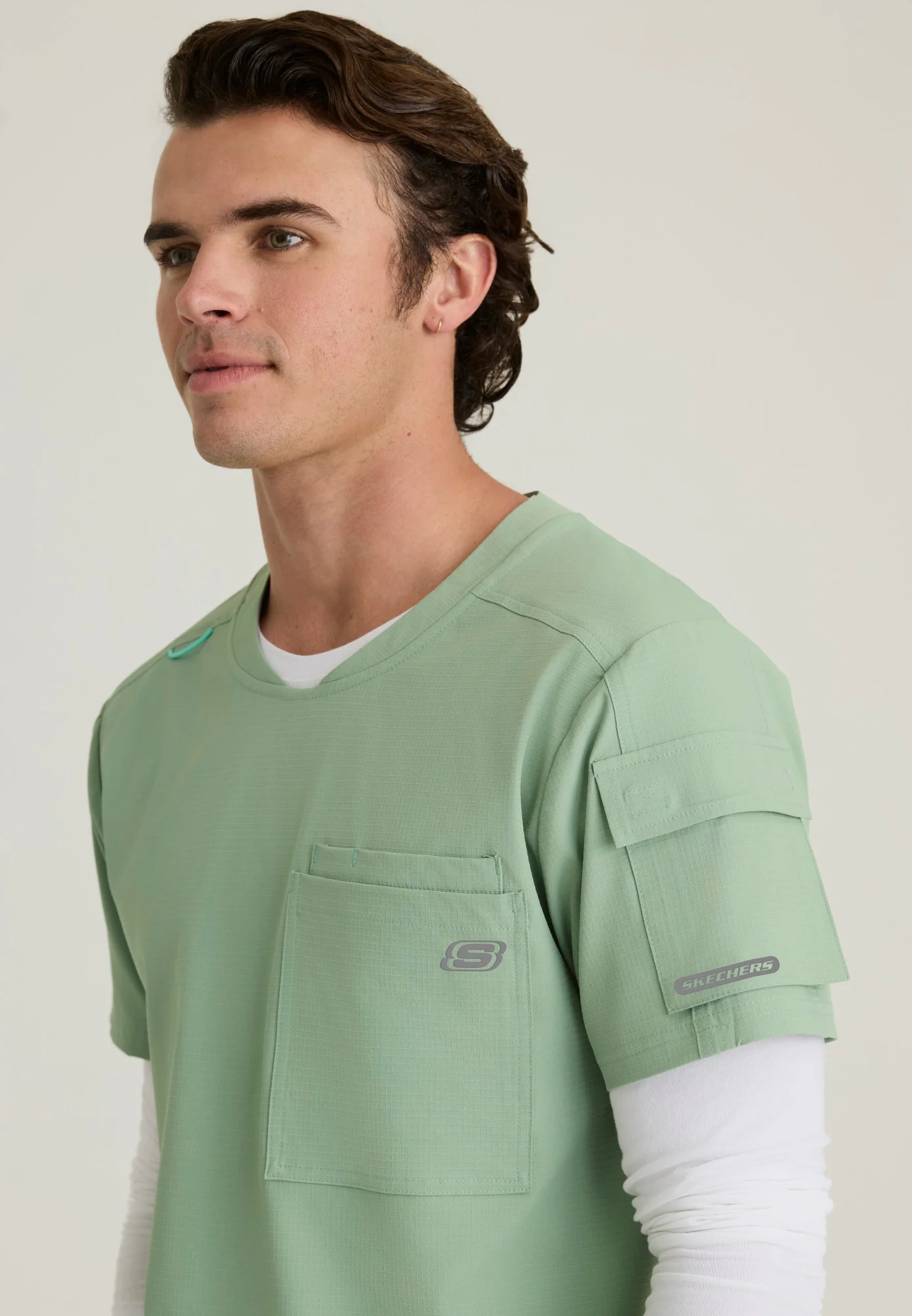 Haut à col rond et ourlet asymétrique à 3 poches pour homme Skechers Ripstop SKT277