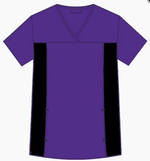 Haut dame à encolure en V classique, panneaux latéraux extensibles. Ce haut a deux poches cachées intérieures et une poche stylo sur la manches gauche. Matériaux : Tissu 65% polyester 35% coton Dimensions : Longueur dos 25 1/2 »