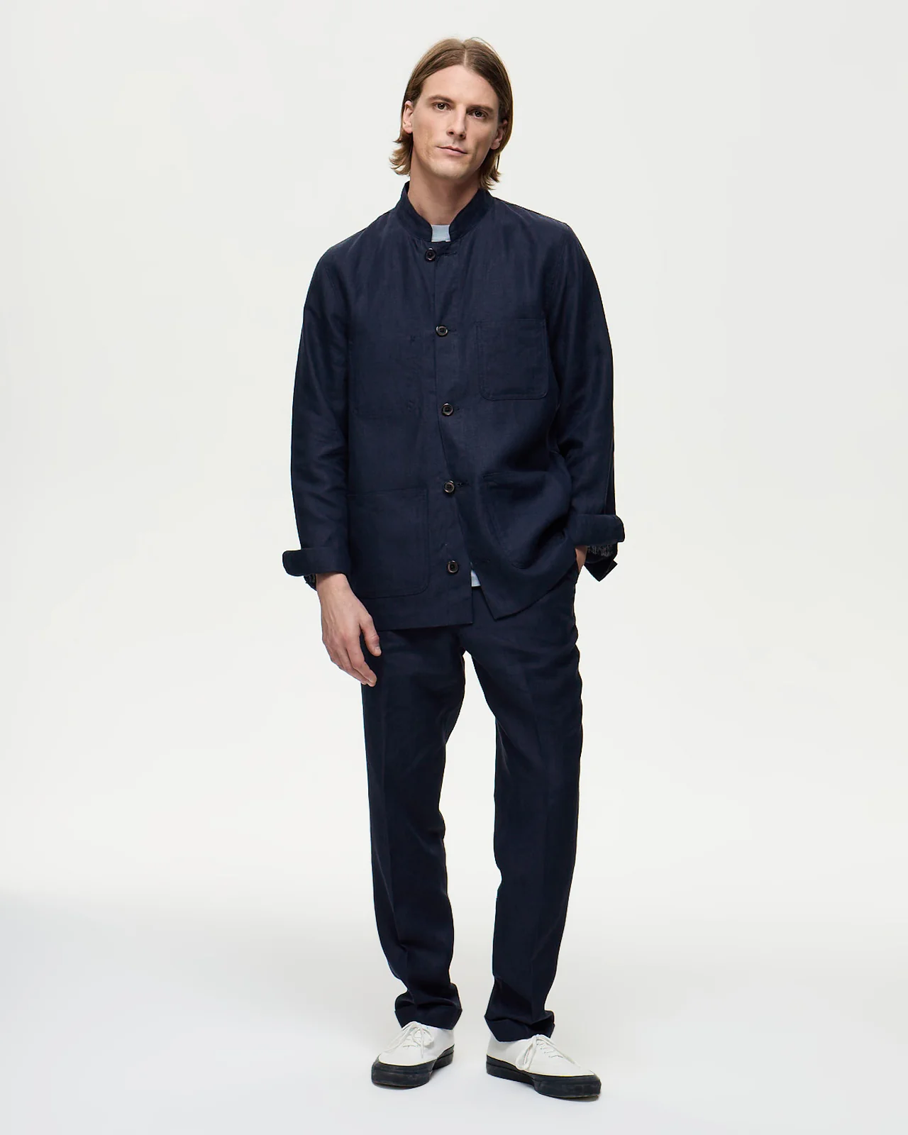 La veste de peintre en lin, l’élégance estivale revisitée. Confectionnée en lin naturel belge, tisseur spécialisé depuis 1858 et fournisseur de la cour de Belgique. Sa finition sanforisée stabilise le tissu et lui donne une main douce exceptionnelle. Col Mao plutôt qu’un col de chemise classique pour une modernité assumée. Non doublée, elle reste légère et très confortable. Teinte navy universelle et intemporelle. Fabrication marocaine.
