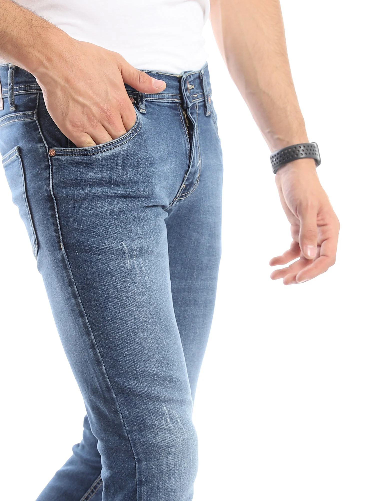 Jean homme au design moderne et à la coupe droite offrant confort et maintien tout au long de la journée. Il est doté de poches avant et arrière pratiques, avec de légers effets déchirés apportant une touche jeune et tendance. Confectionné dans une matière douce et légèrement stretch, il assure un confort optimal au quotidien, ce qui en fait un choix idéal pour un usage journalier. Facile à associer avec des chemises ou des t-shirts pour un look élégant et casual adapté à toutes les occasions.
