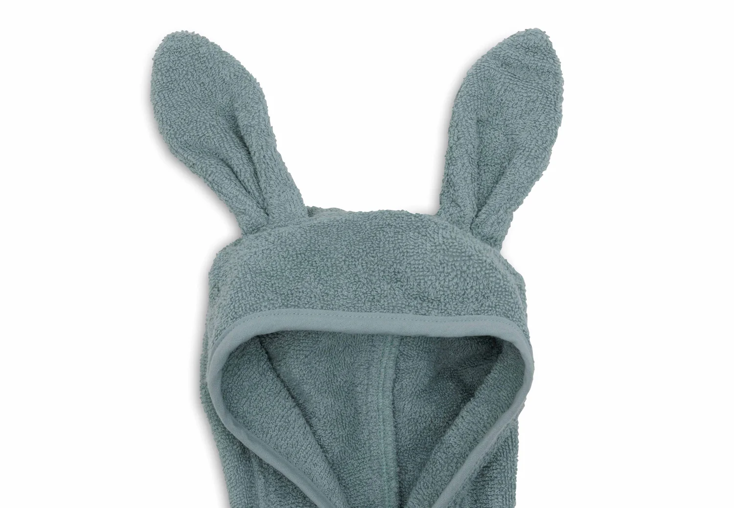 Le peignoir est également conçu pour être facile à porter et à ajuster. Il est doté d’un bouton pression pratique pour le maintenir fermé, d’un élastique dans le dos pour un ajustement parfait et d’une ceinture attachée au peignoir, afin qu’elle ne se perde jamais. Ces détails garantissent que l’enfant reste bien couvert et confortable tout au long de l’utilisation.