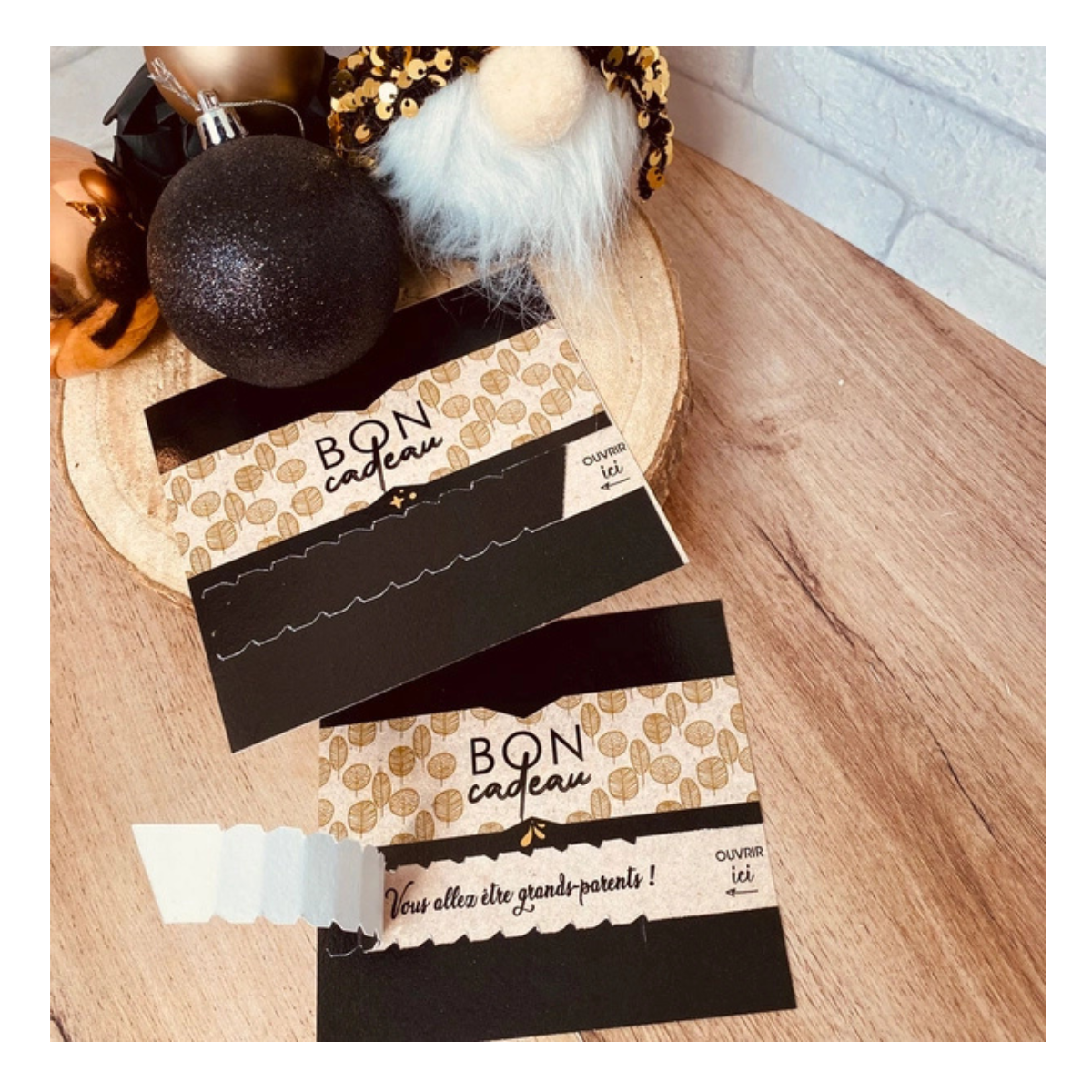 Ce bon cadeau est idéal pour annoncer de manière unique votre grossesse à la future famille de votre petit trésor. Il réserve bien des surprises… Une languette prédécoupée révèle un message spécial : « Vous allez être grands parents »