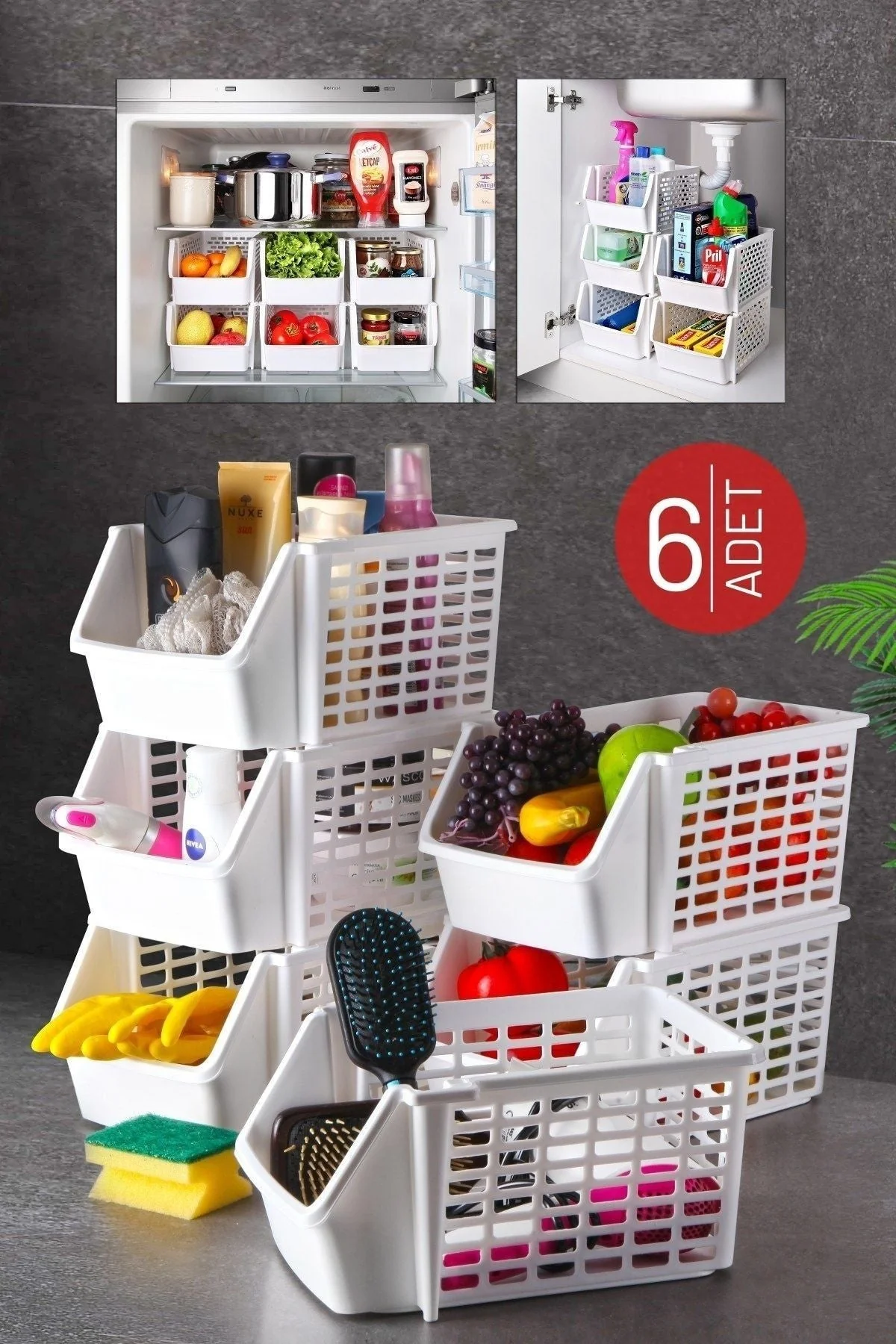 Optimisez votre rangement avec ce lot de 6 organiseurs blancs empilables, parfaits pour l’intérieur des placards, sous l’évier et dans le réfrigérateur. Pratiques au quotidien, ils permettent de créer des niveaux en les superposant pour gagner de la place et garder tout bien visible.