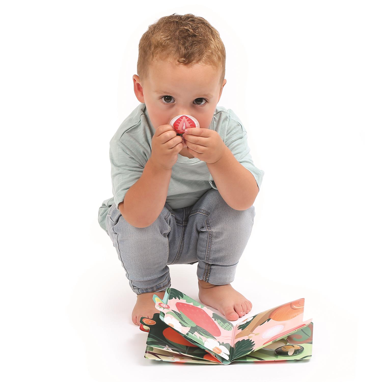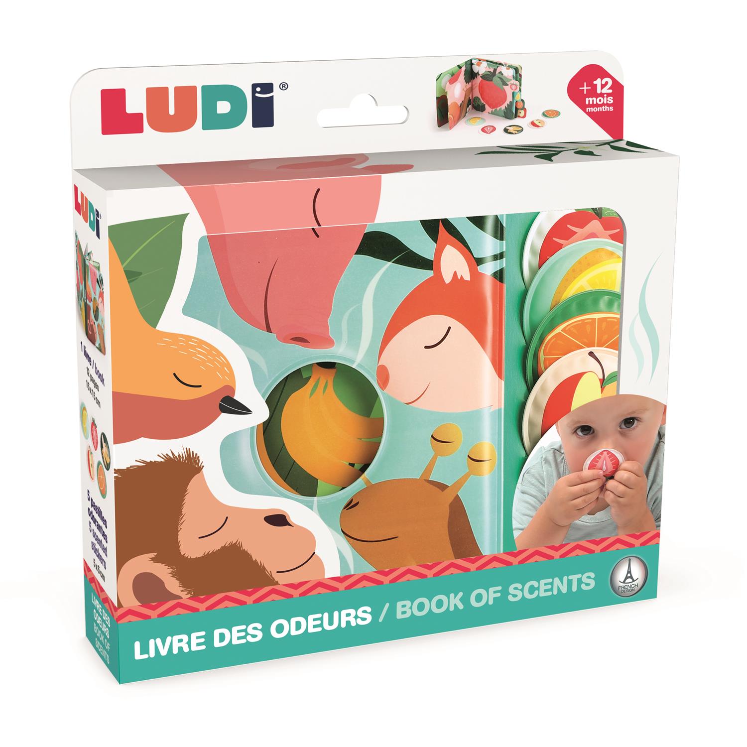 Offrez à votre enfant une lecture sensorielle et amusante avec ce livre fruité rempli d’odeurs à découvrir ! Chaque page présente un animal et son fruit préféré, que l’enfant peut reconnaître grâce aux parfums intégrés. Le livre inclut aussi un jeu d’association avec cinq vignettes parfumées à scratcher au bon endroit. Idéal pour développer le langage, la mémoire olfactive et la curiosité dès 12 mois. Un livre ludique, tendre et parfait pour éveiller les sens !