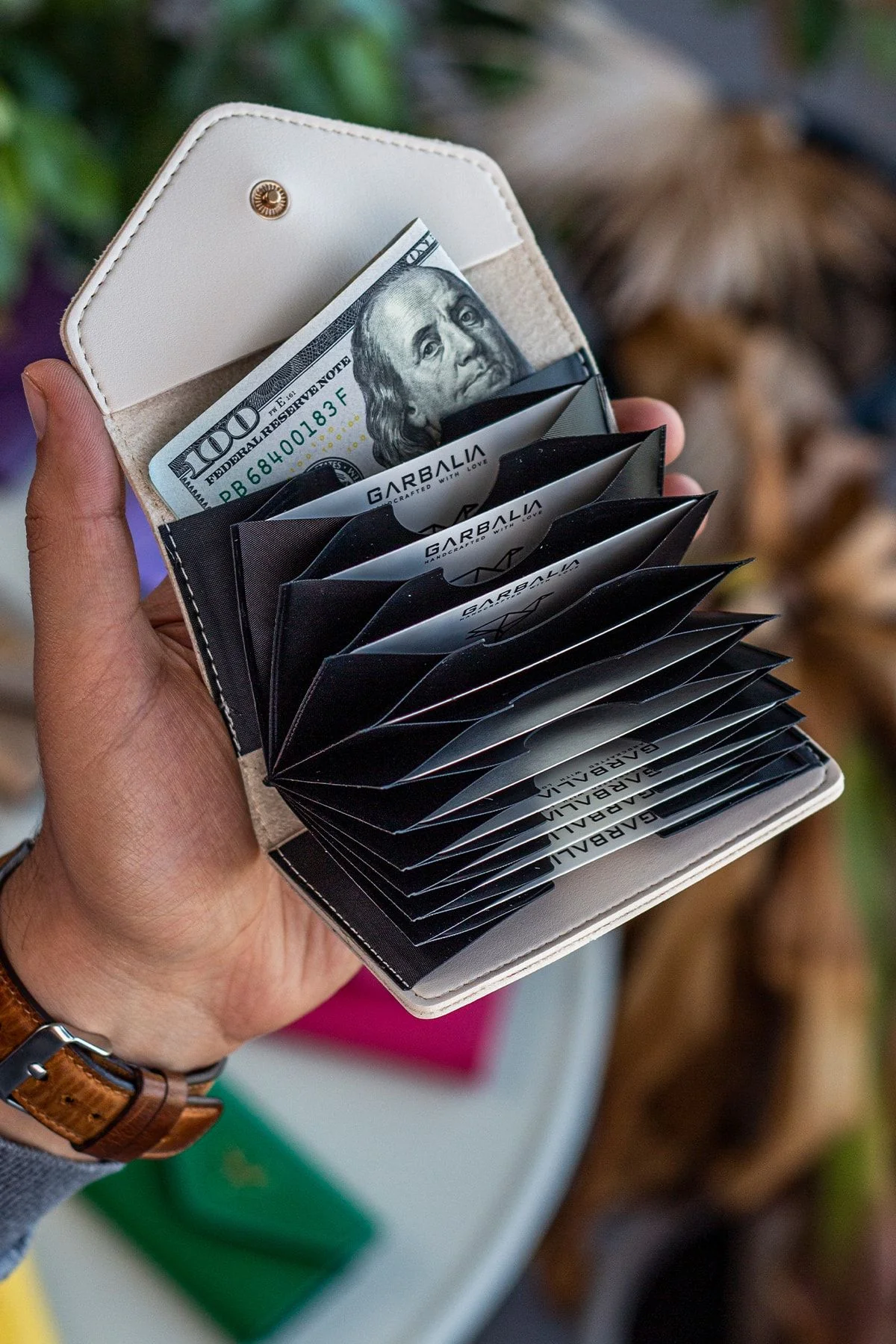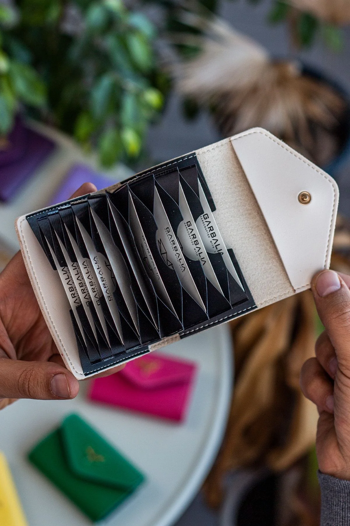 It is meticulously produced with high standards and hand workmanship in Turkey. Since it is made of first-class artificial leather, it is extremely resistant to tearing and breaking. It has dimensions of 10.4 cm (width) x 7.2 cm (length). There are 10 independent card slots.