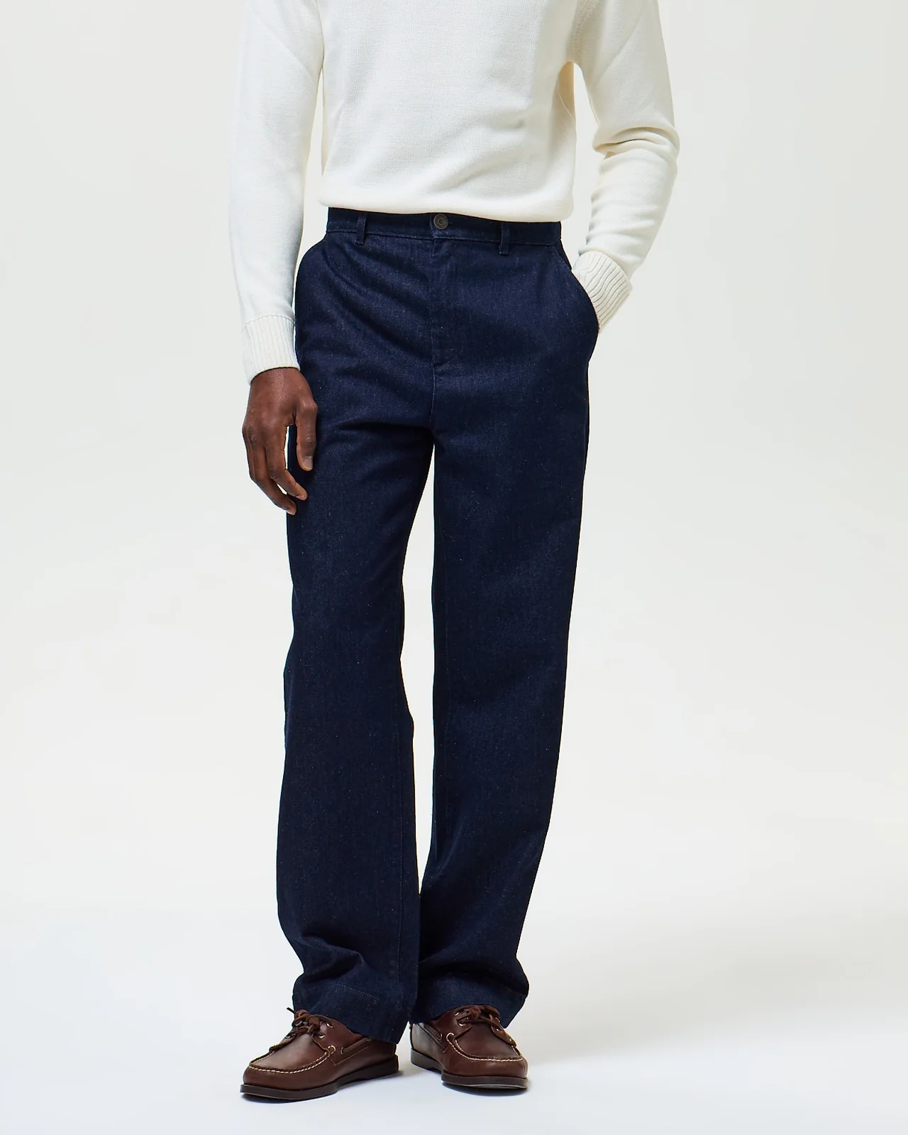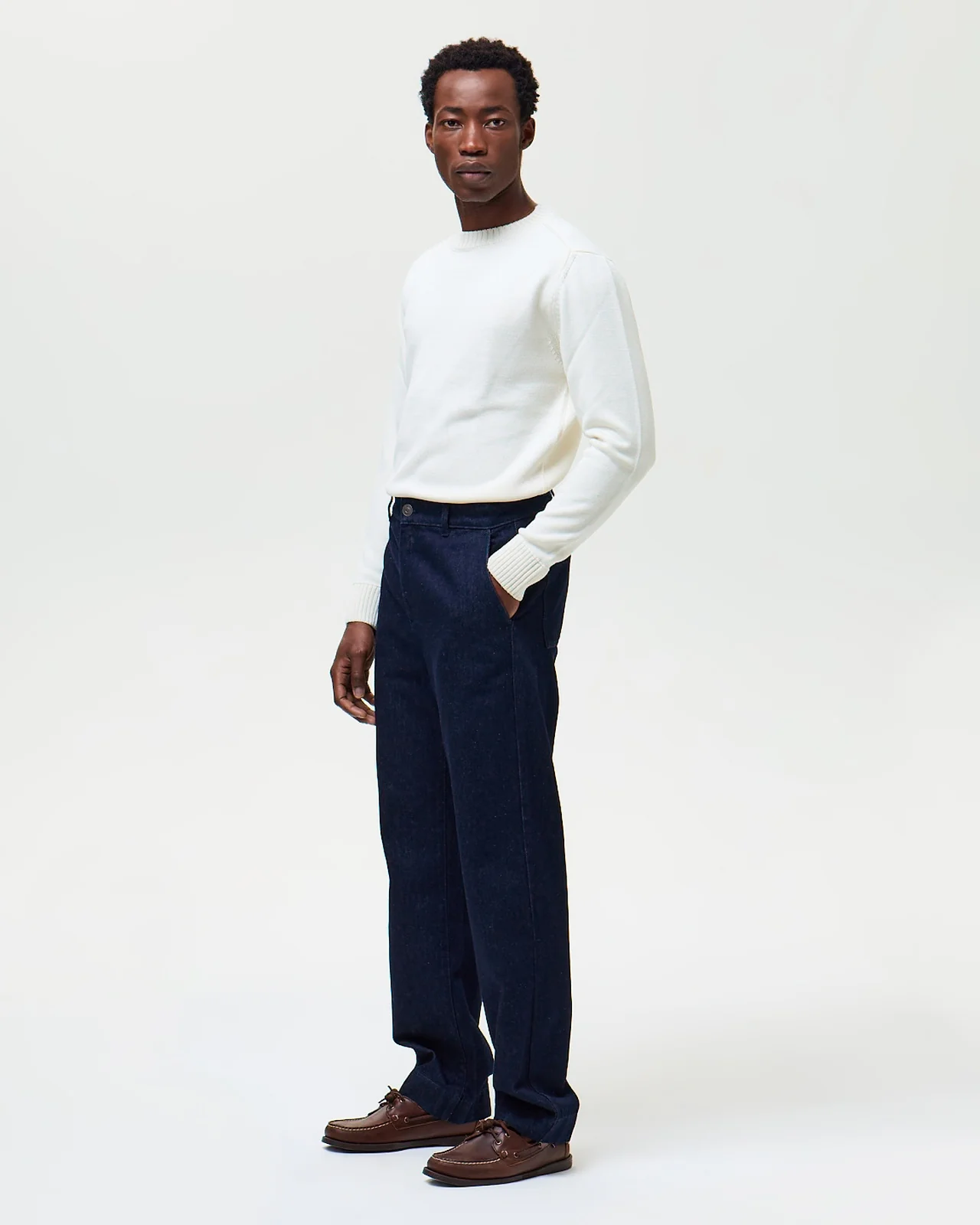 L’allure d’un chino, le caractère d’un denim indigo. Marcel réunit le meilleur des deux mondes. Sa coupe droite légèrement ample apporte aisance et modernité, loin du chino ajusté classique. Taillé dans un denim blue-black rincé à la teinture indigo, il cache son jeu : ce bleu profond évolue avec le temps, révélant de beaux contrastes au fil des lavages. L’indigo, pigment ancestral du jean par excellence, crée une patine unique qui raconte votre histoire. Confectionné en Italie par un tisseur établi depuis 64 ans, Marcel incarne cette expertise du denim de qualité. Une pièce essentielle qui gagne en personnalité saison après saison.