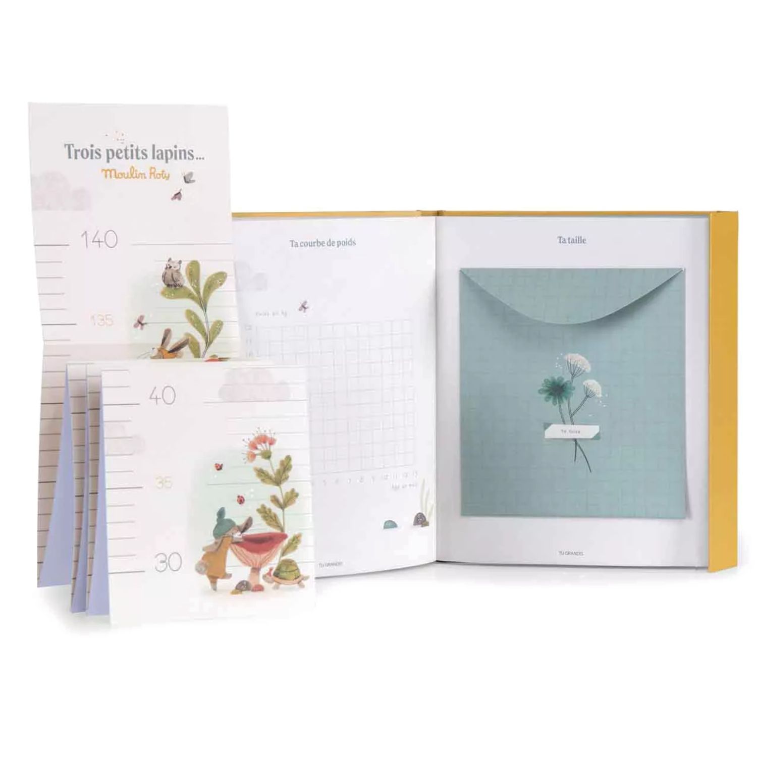 Immortalisez les plus beaux souvenirs de votre enfant avec le Livre de naissance Trois Petits Lapins de Moulin Roty. Ce magnifique album illustré de 80 pages accompagne l’enfant de ses tout premiers jours jusqu’à ses 6 ans, offrant aux parents et aux proches un espace tendre et poétique pour noter, raconter et coller les instants précieux de la petite enfance.