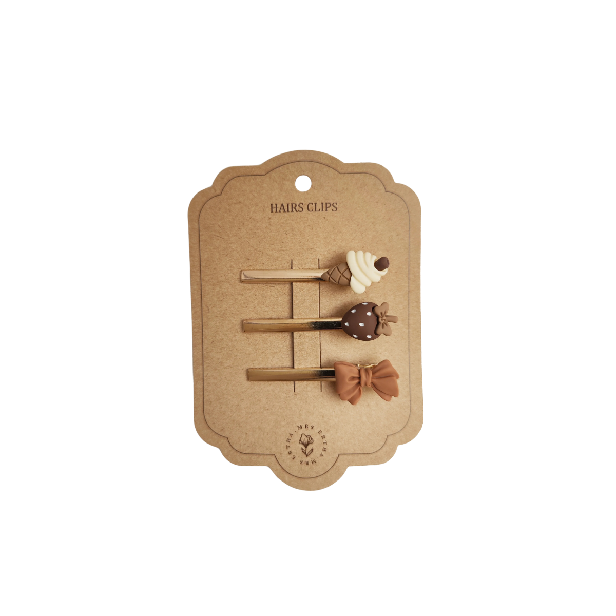 Mrs Ertha – Lot de 3 barrettes Glace, Fraise et Noeud