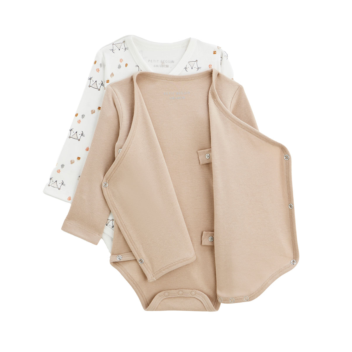 Craquez pour ce lot de 2 bodies naissance trop chou. Composé d’un body marron glacé avec son petit écureuil à croquer, et d’un body écru imprimé en all over, ce lot deviendra vite un indispensable. Son ouverture croisée à pression facilitera l’habillage de bébé !