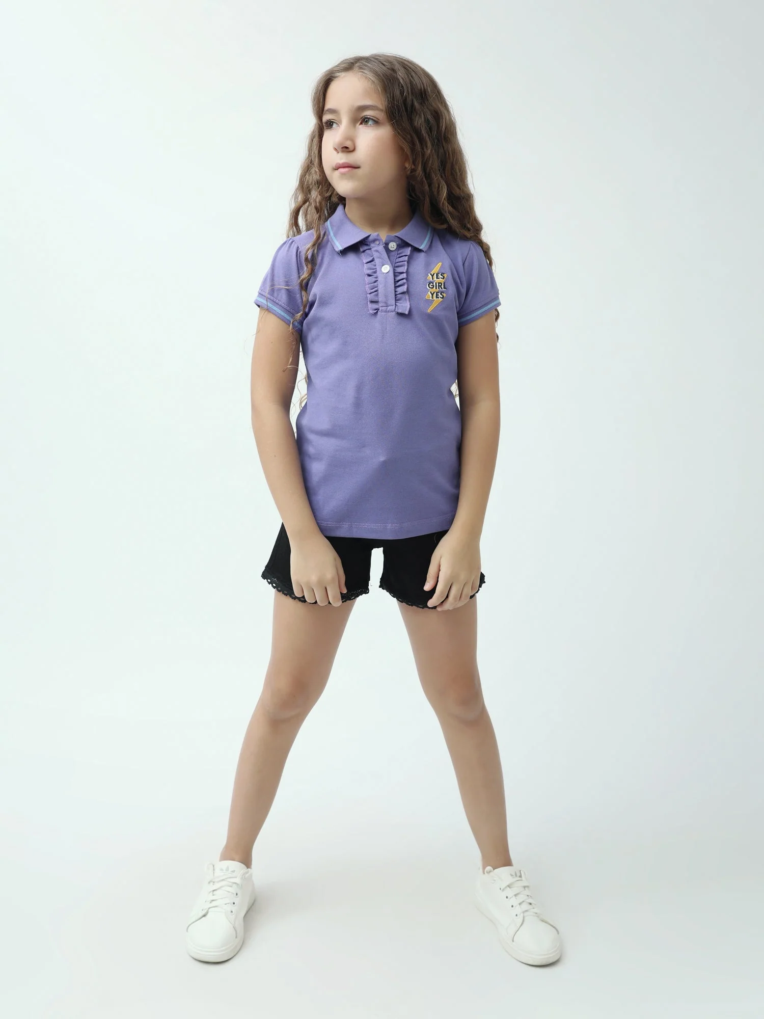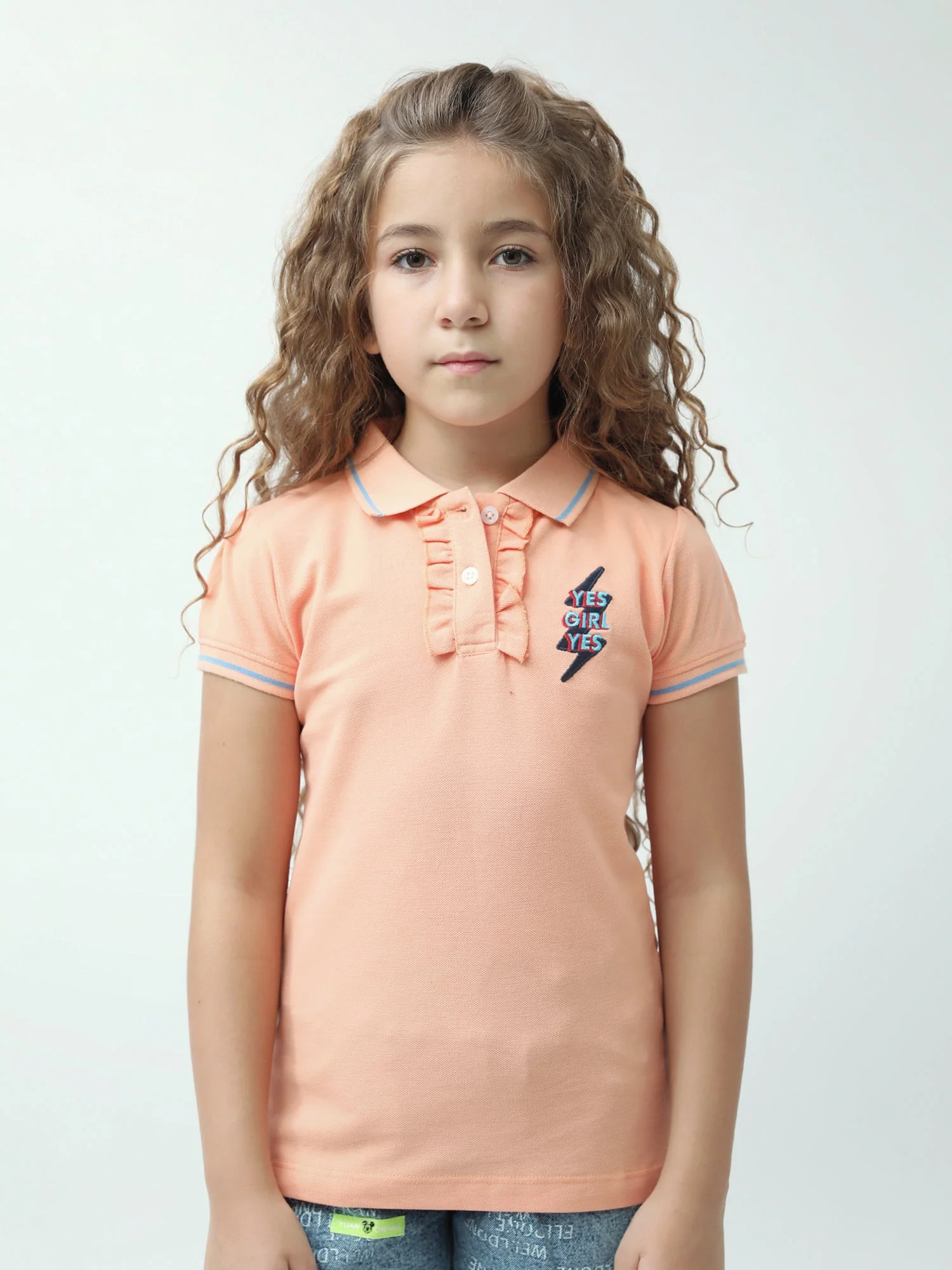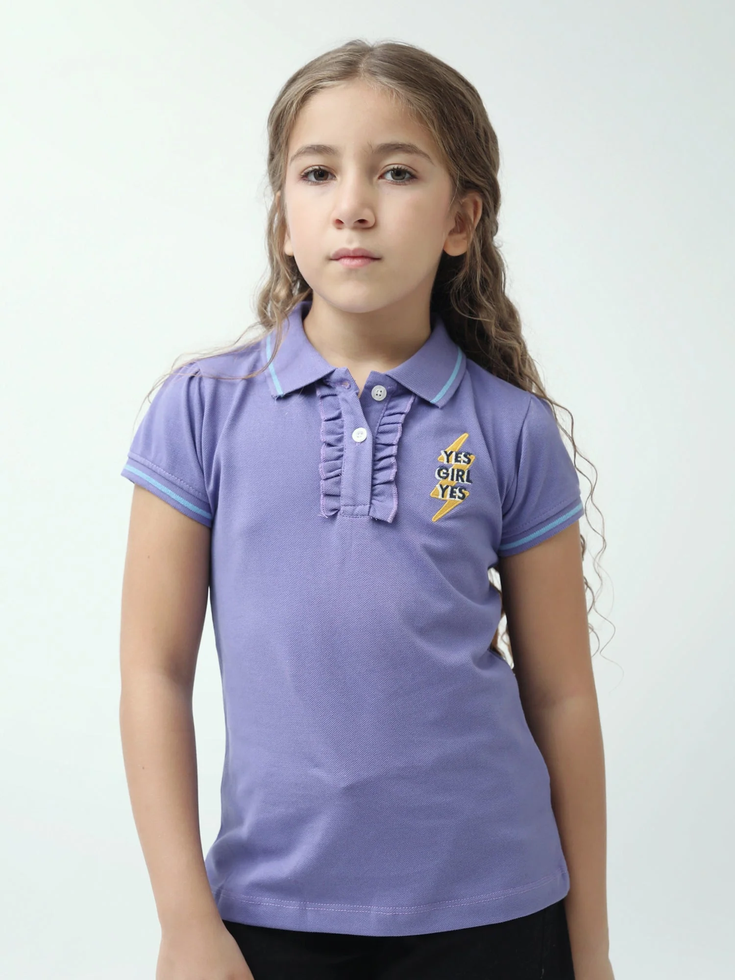 Polo ado fille YES GIRL YES avec volants col classique manches courtes – POS24SEPI71002MR1