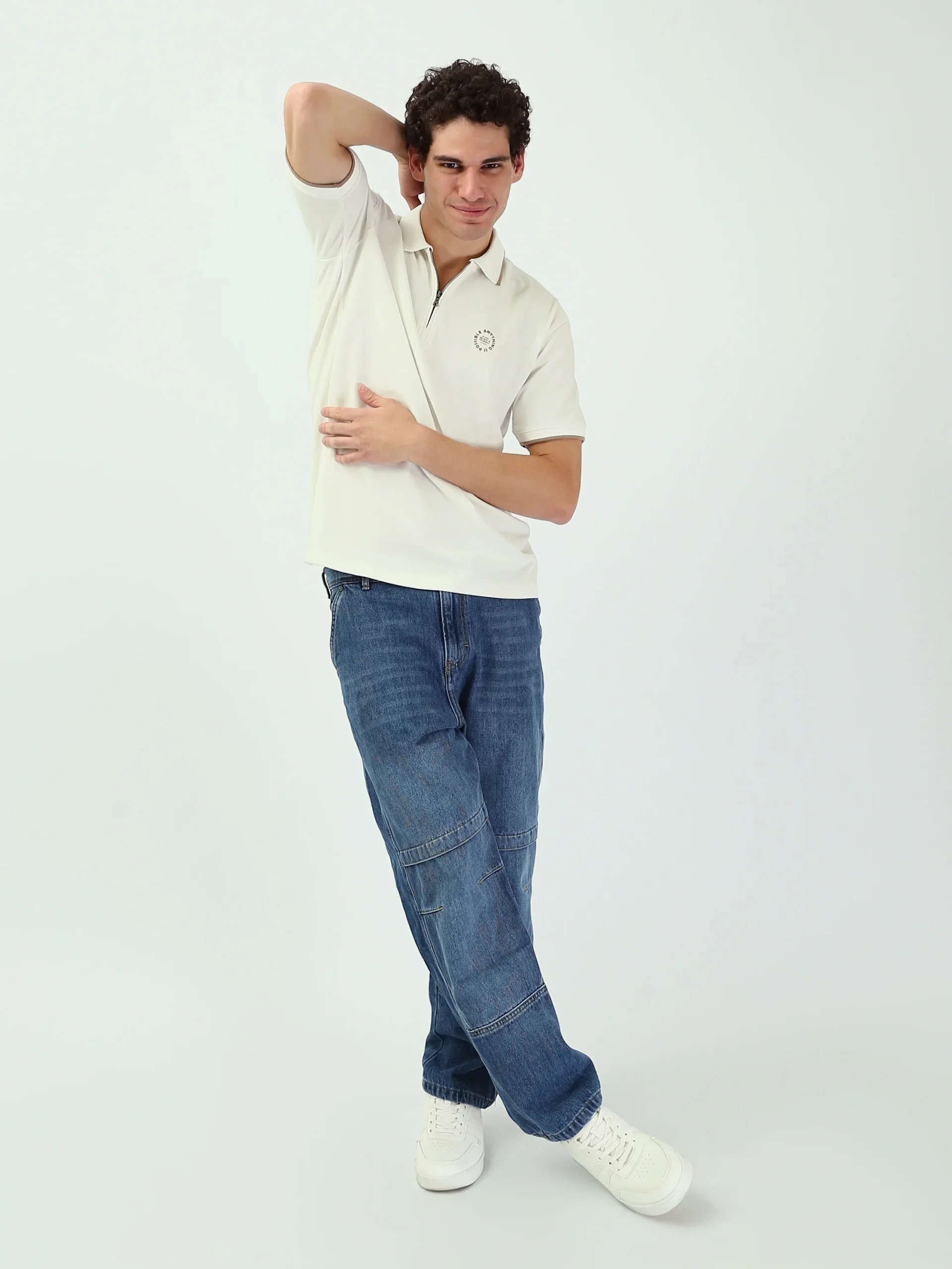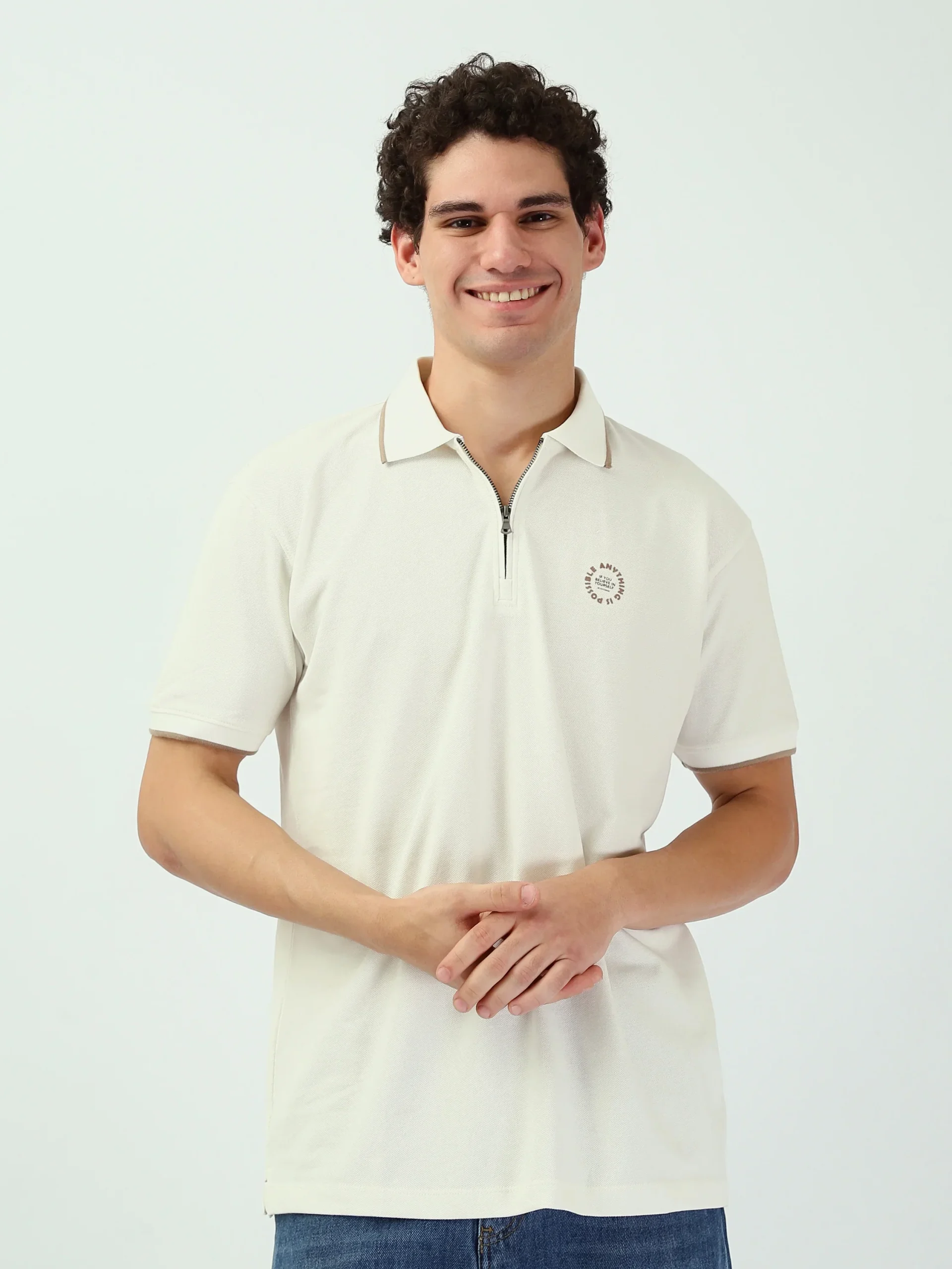 Polo homme off-white à fermeture éclair – Style moderne et élégant – POS25SBPW21052TM1