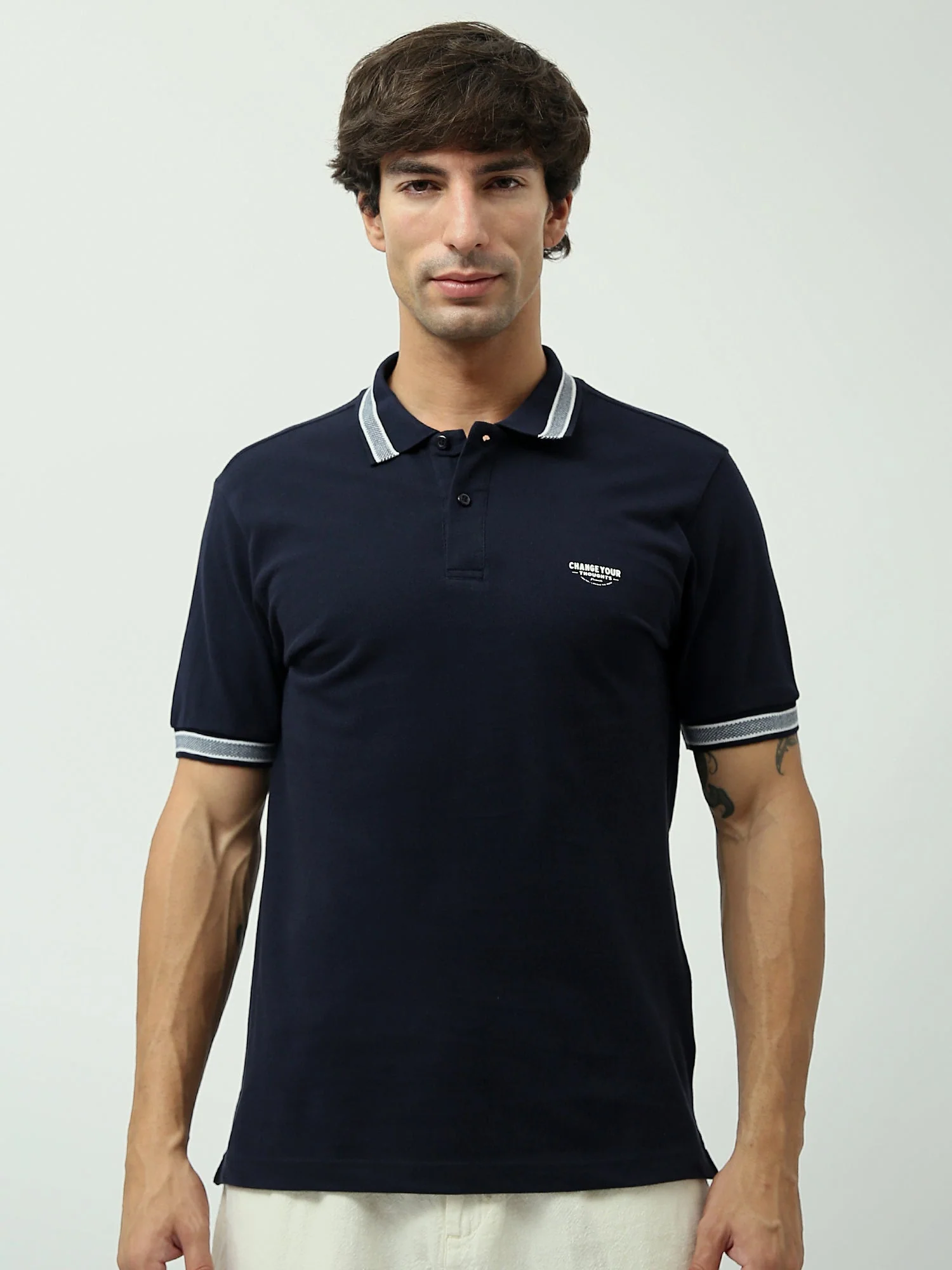 Polo pour homme au design moderne, parfait pour les looks casuals quotidiens. Il se distingue par un col et des manches décorés de lignes élégantes, ajoutant une touche de simplicité raffinée. Avec un petit logo sur la poitrine, ce polo reflète un look moderne et élégant. Confectionné dans un tissu en coton doux offrant un confort tout au long de la journée, il présente des boutons à l’avant pour un look soigné. Idéal à assortir avec des jeans ou des pantalons en tissu pour un style à la fois confortable et contemporain.