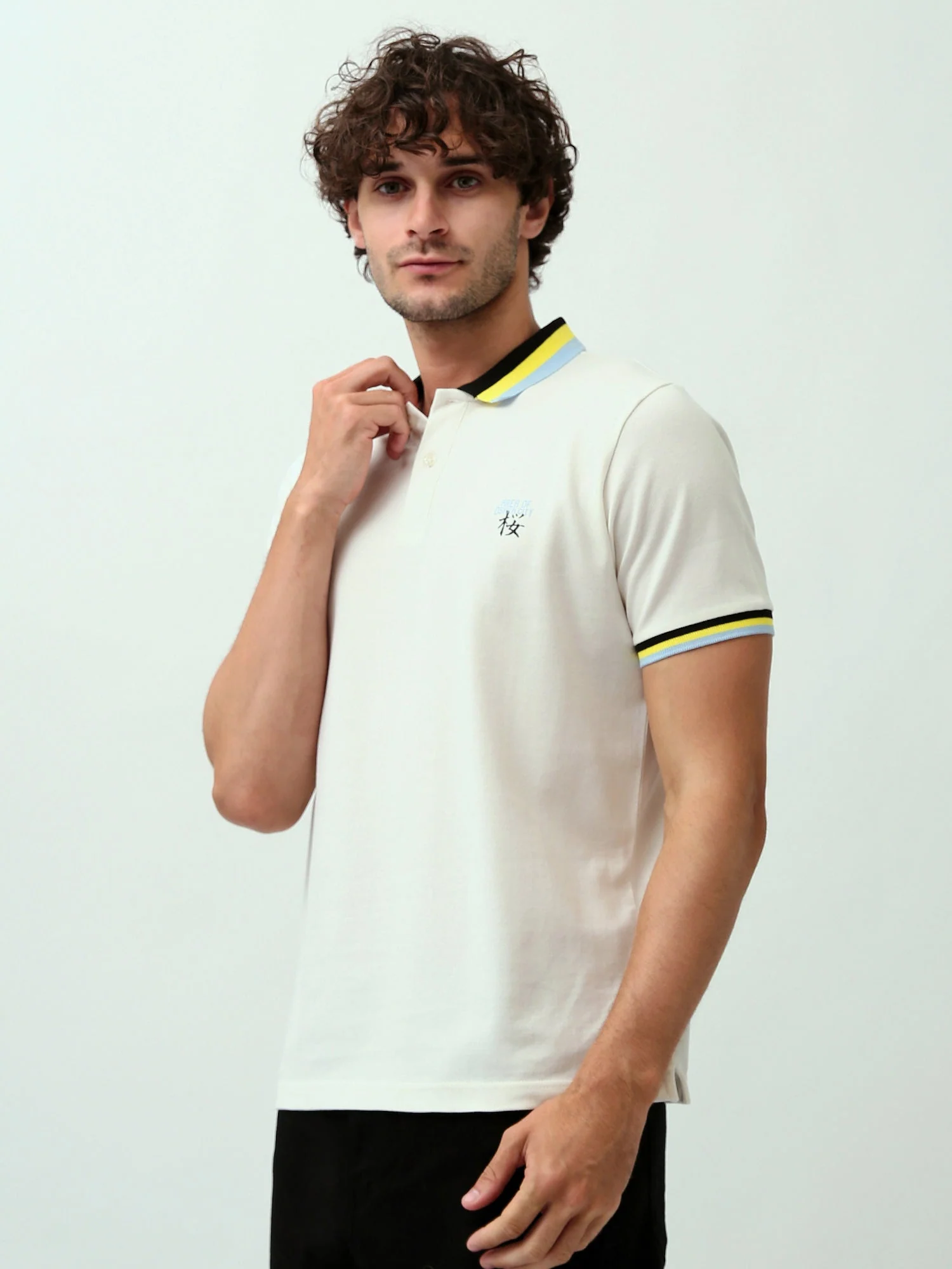 Polo pour homme au design moderne, parfait pour les looks casuals quotidiens. Il se distingue par un col et des manches décorés de lignes colorées, ajoutant une touche d’élégance contemporaine. Il présente un petit logo sur la poitrine, ce qui renforce son attrait. Confectionné dans un tissu en coton doux offrant un confort tout au long de la journée, il dispose de boutons à l’avant pour un look soigné. Facile à assortir avec des jeans ou des pantalons en tissu pour un style jeune et moderne.