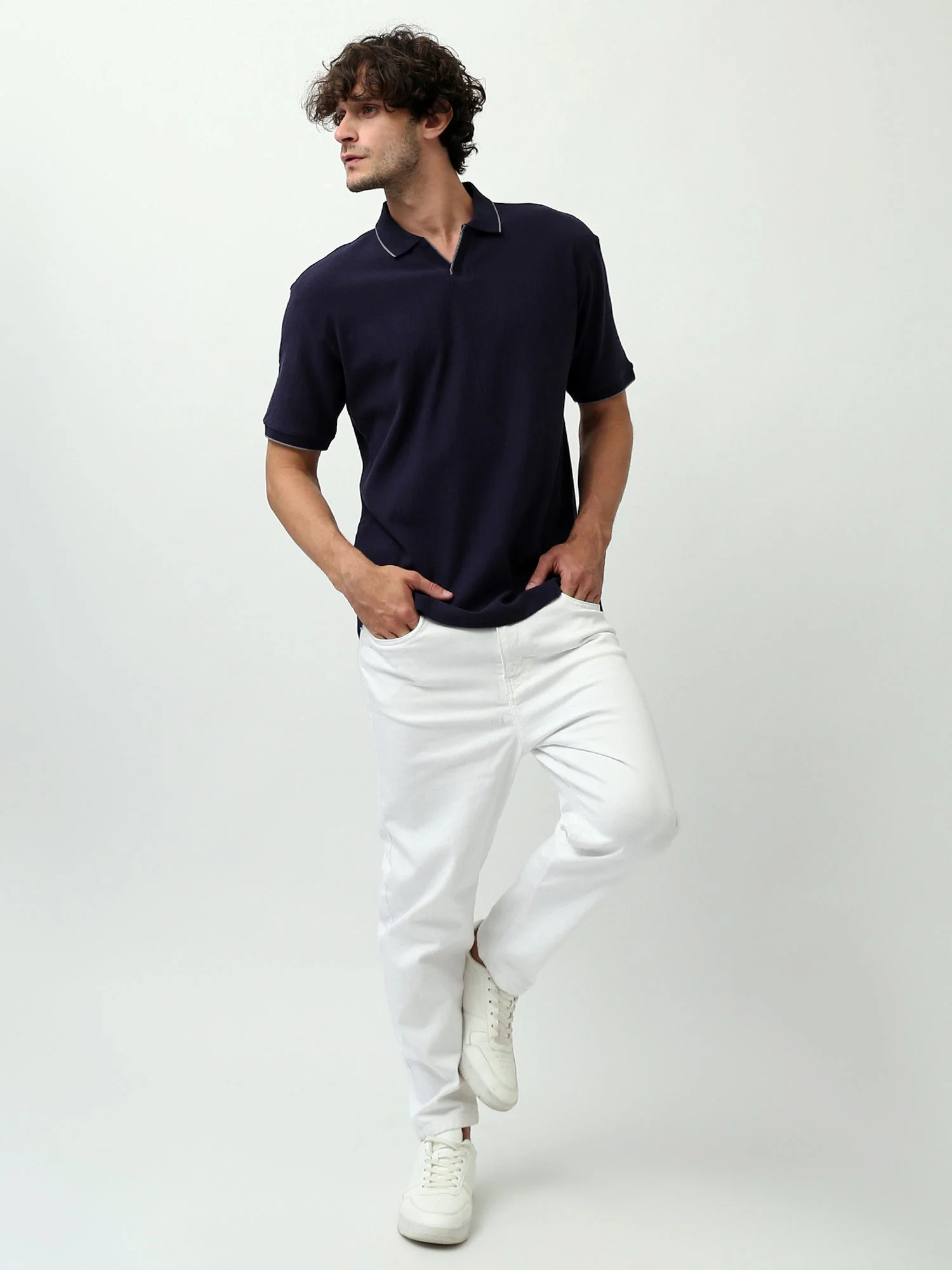Polo pour homme de couleur marine avec des détails en fil sur le col et les manches, ajoutant une touche d’élégance simple. Il présente une coupe confortable et élégante, idéale pour les looks décontractés ou quotidiens. Fabriqué en tissu de haute qualité, il assure un confort tout au long de la journée. Il peut être facilement assorti avec un jean ou un short pour un look moderne et polyvalent.